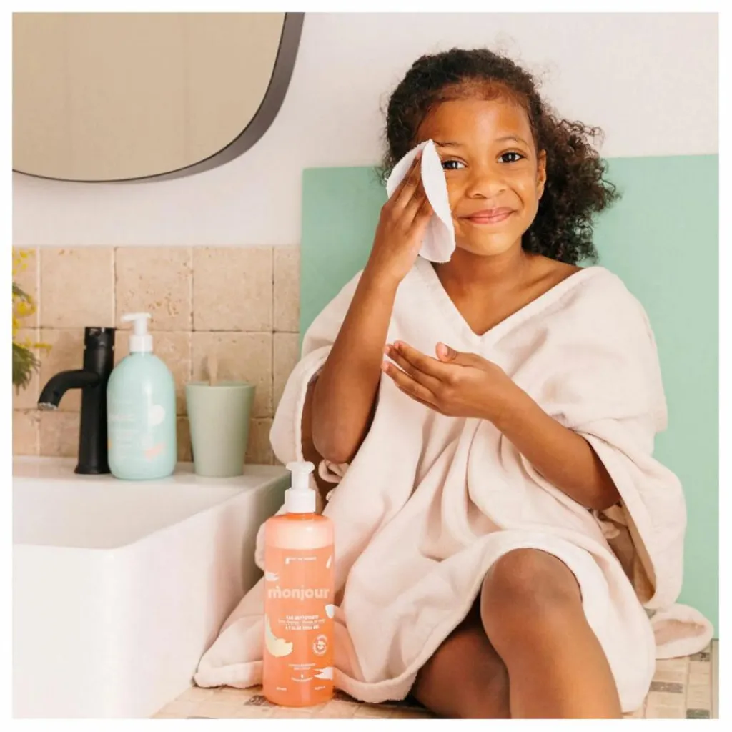Option 1 : Appuyez sur la pompe pour déposer du produit sur un coton lavable de préférence. Aucun rinçage n’est nécessaire.