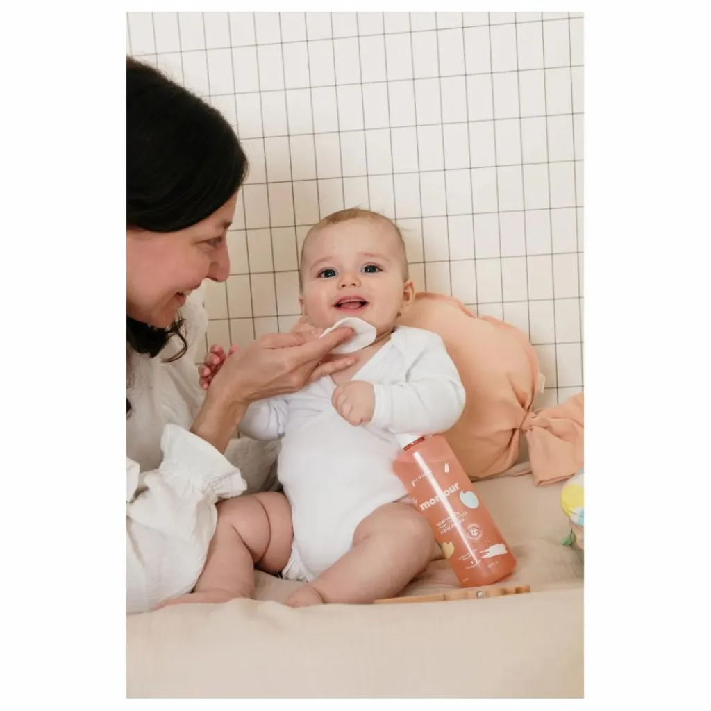 Cette eau nettoie en douceur le visage, le corps et le siège de bébé tout en protégeant la peau du dessèchement et en apportant une sensation de fraîcheur.