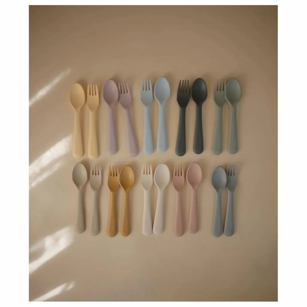 - Avec ses couleurs douces et son design épuré, cet ensemble de fourchettes et cuillères est simple, et élégant, et facile à tenir pour votre enfant.