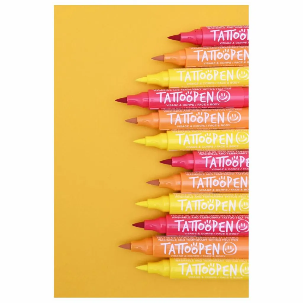 Totalement inédit : découvrez le concept TATTOOPEN, une aventure créative à vivre en famille ou entre copains ! Ce feutre permet de réaliser des tatouages temporaires lavables sur le visage et sur le corps.