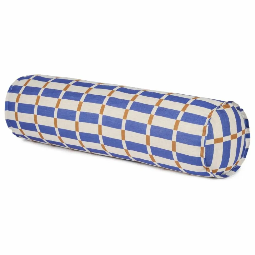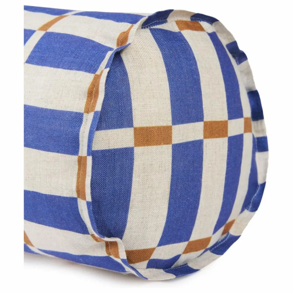 Laissez-vous séduire par les coussins cylindriques Cliff de la collection Nobodinoz : On adore leur imprimés à carreaux imprimés sur le lin français.