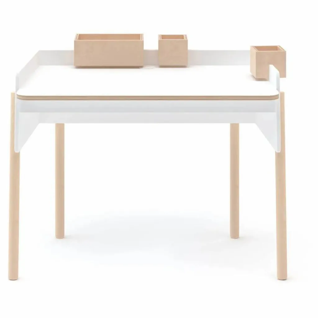 - La surface du bureau peut être réglée à 3 hauteurs différentes., Finitions non toxiques à base d’eau et sans COV