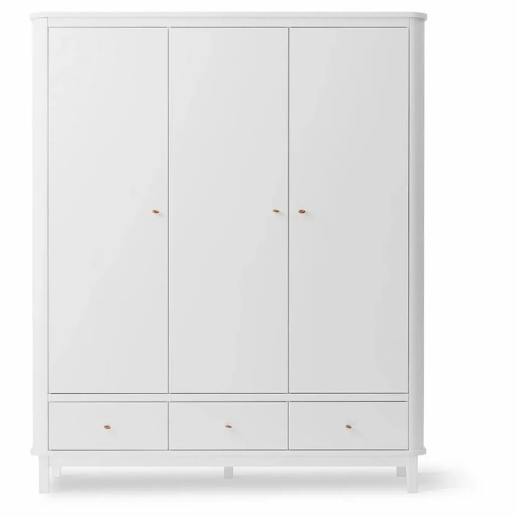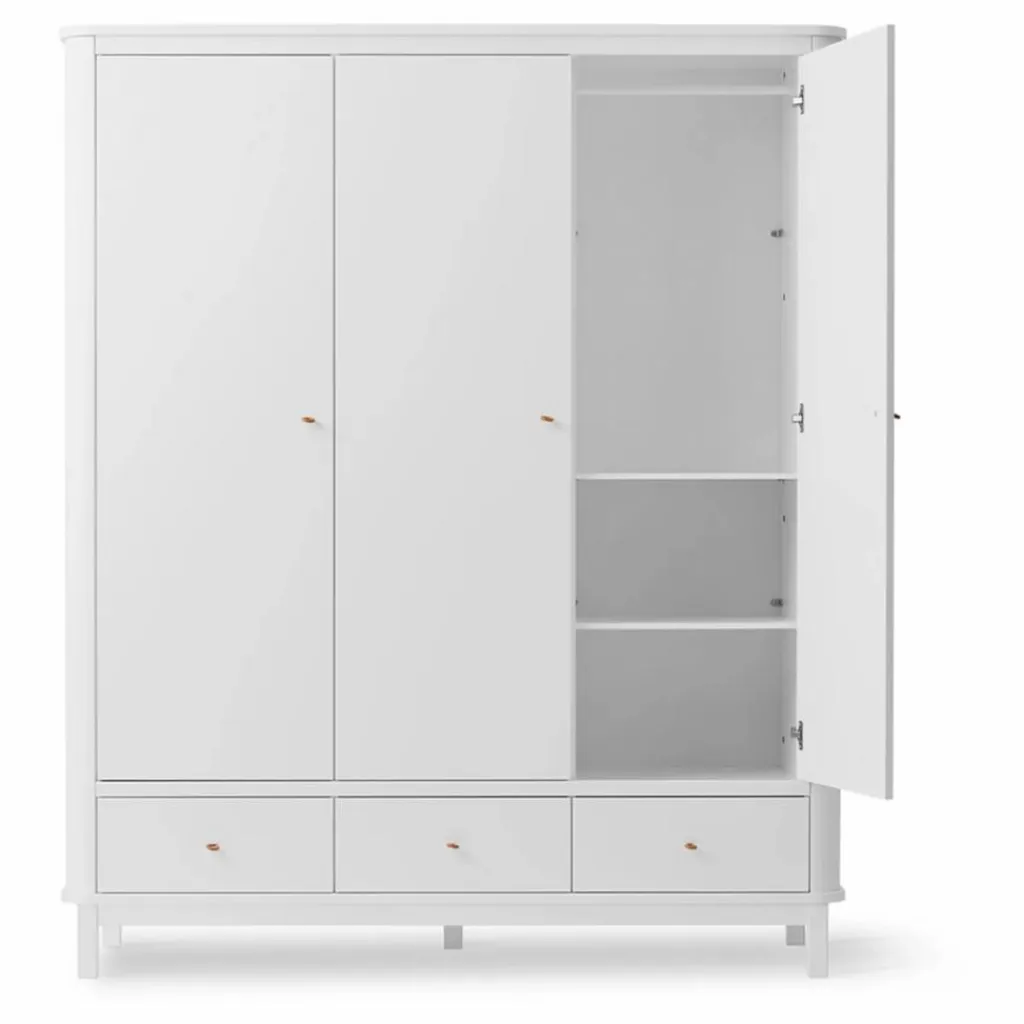 - L’armoire Wood est conçue comme un meuble aux multiples fonctions. Ses bords arrondis lui offrent une légèreté visuelle. Elle dispose de deux crochets intégrés de chaque cotés, afin de suspendre peignoir, tenue du jour, etc. Ils s’intègrent parfaitement à l’armoire ce qui leur créer une fonction à la fois décorative et pratique. L’intérieur de l’armoire peut être configuré avec des étagères flexibles, mais les tiroirs du bas sont des éléments fixes.