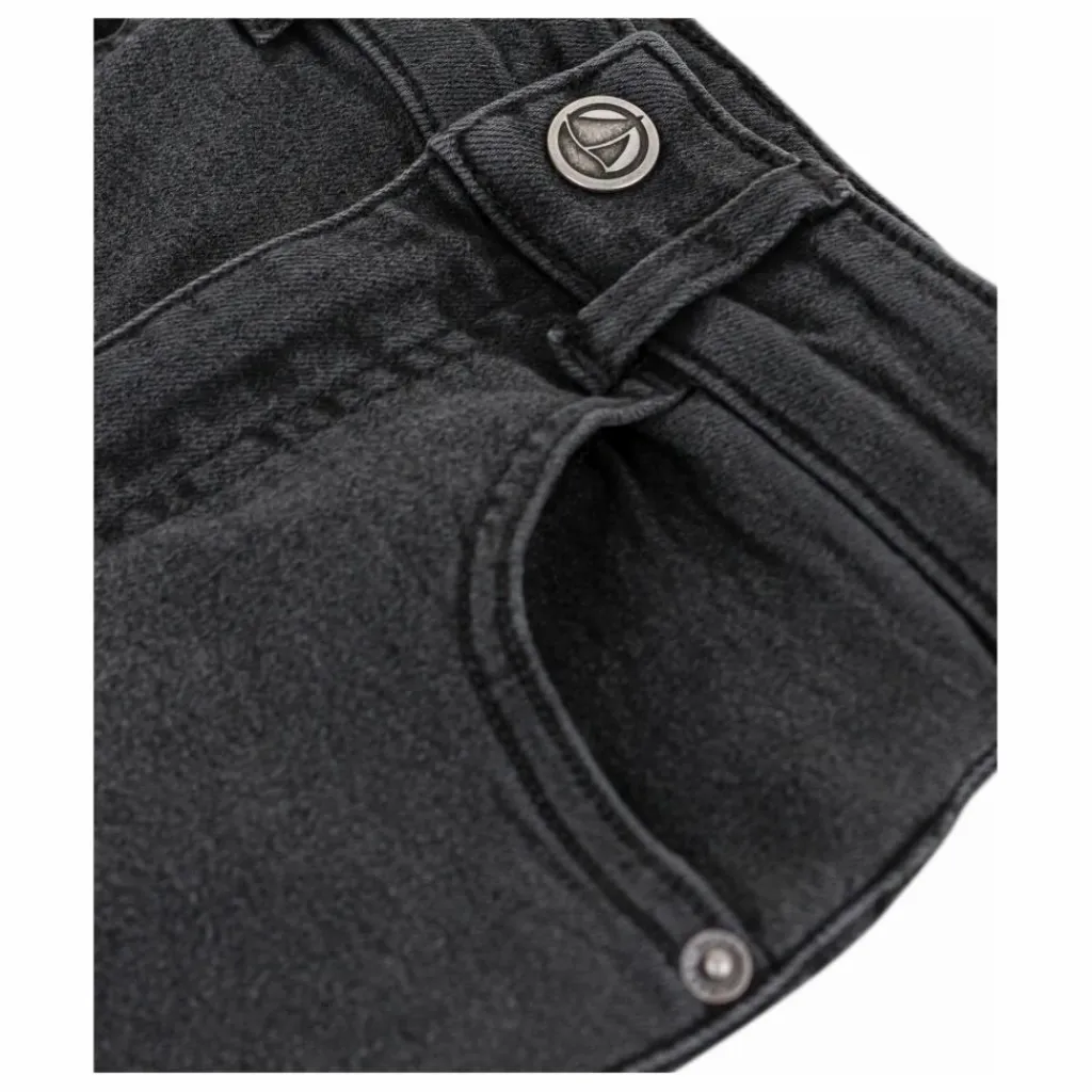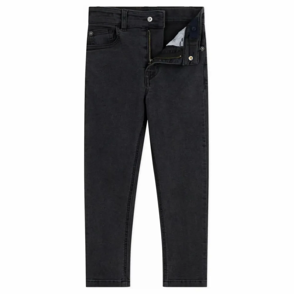 - Taille avec un élastique réglable pour plus de confort, fermeture du jean par zip et bouton-pression. Pantalon cinq poches.