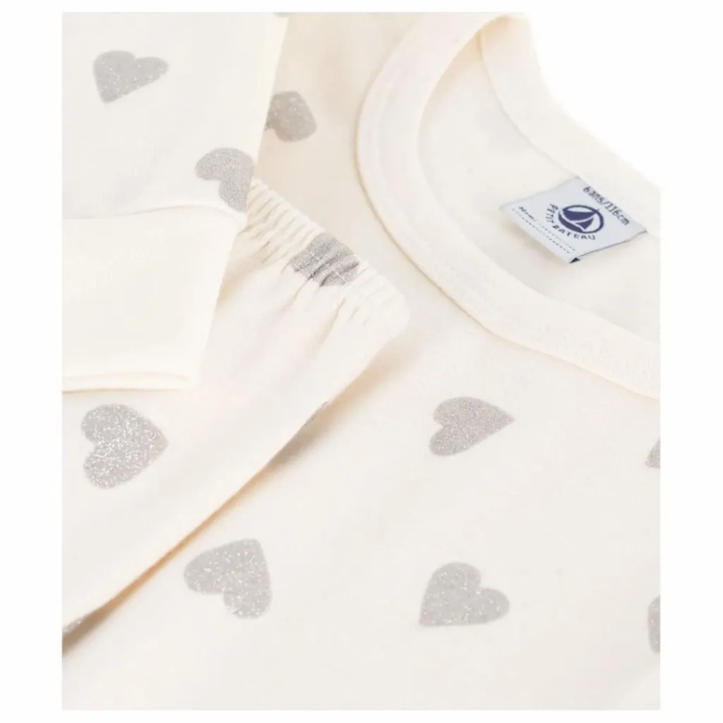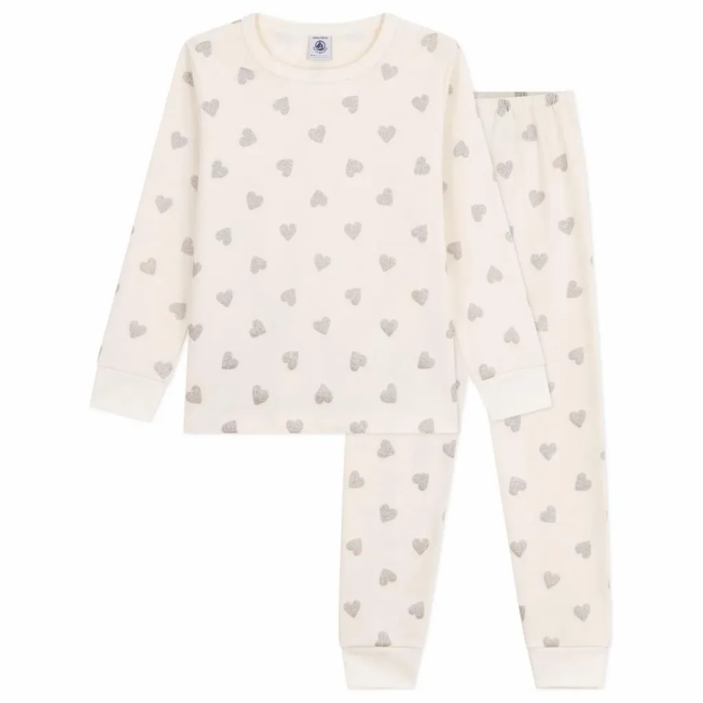 - Pyjama en côte 1×1 à imprimé cœurs à paillettes, pour briller jusque dans vos rêves !