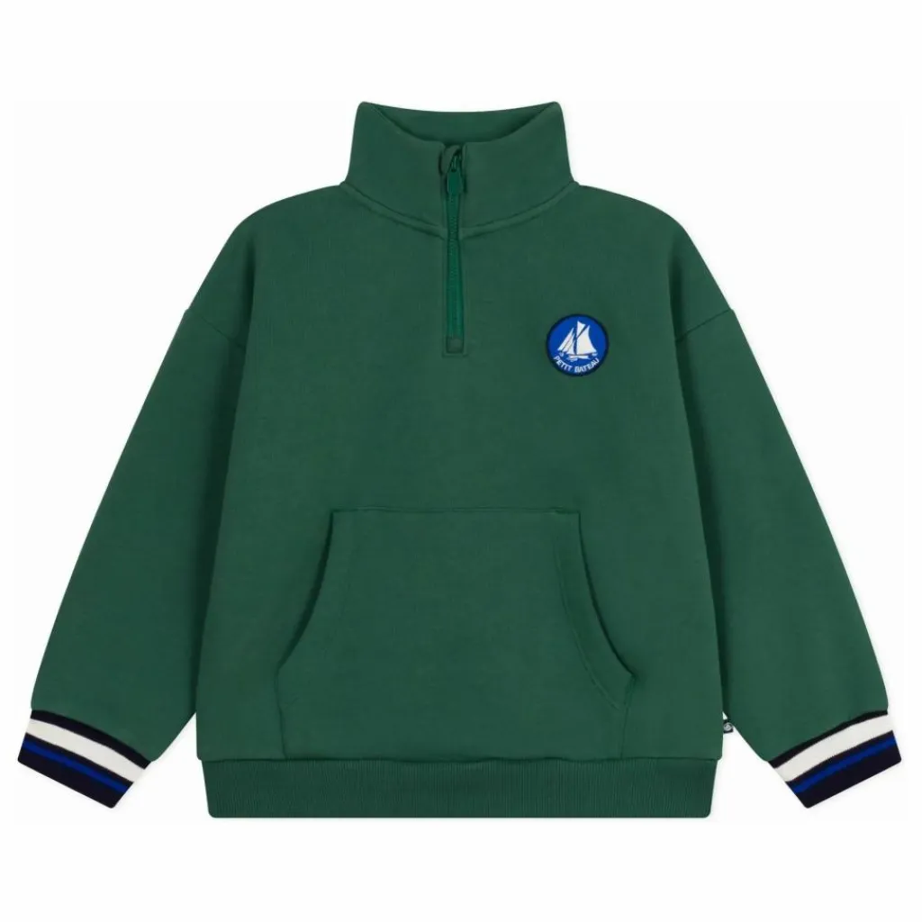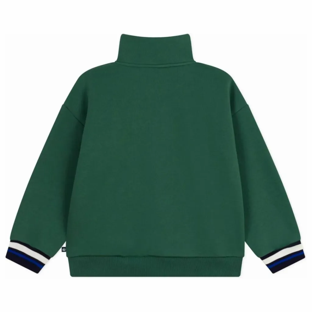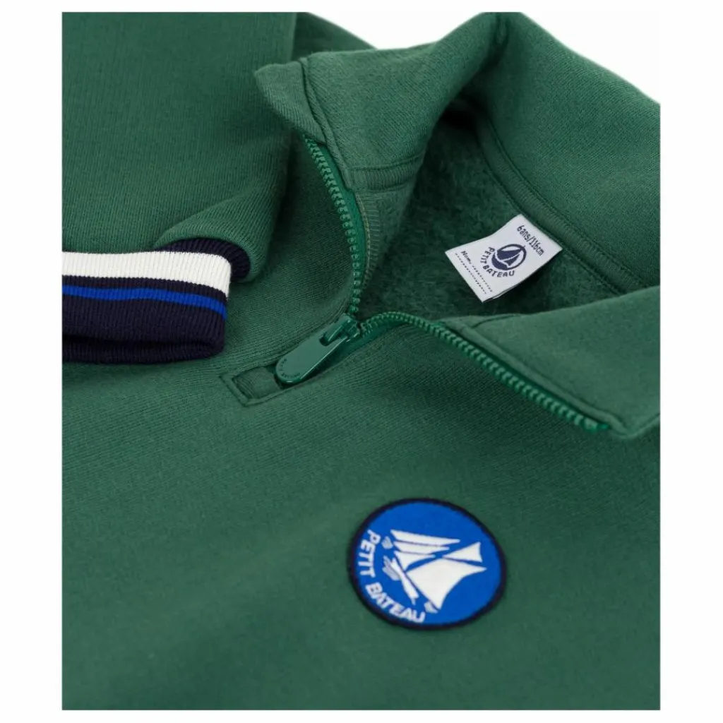 - Col montant zippé. Bord-côtes en bas de manche et en bas de corps. Emmanchure descendue. Animé avec un badge brodé à la poitrine.