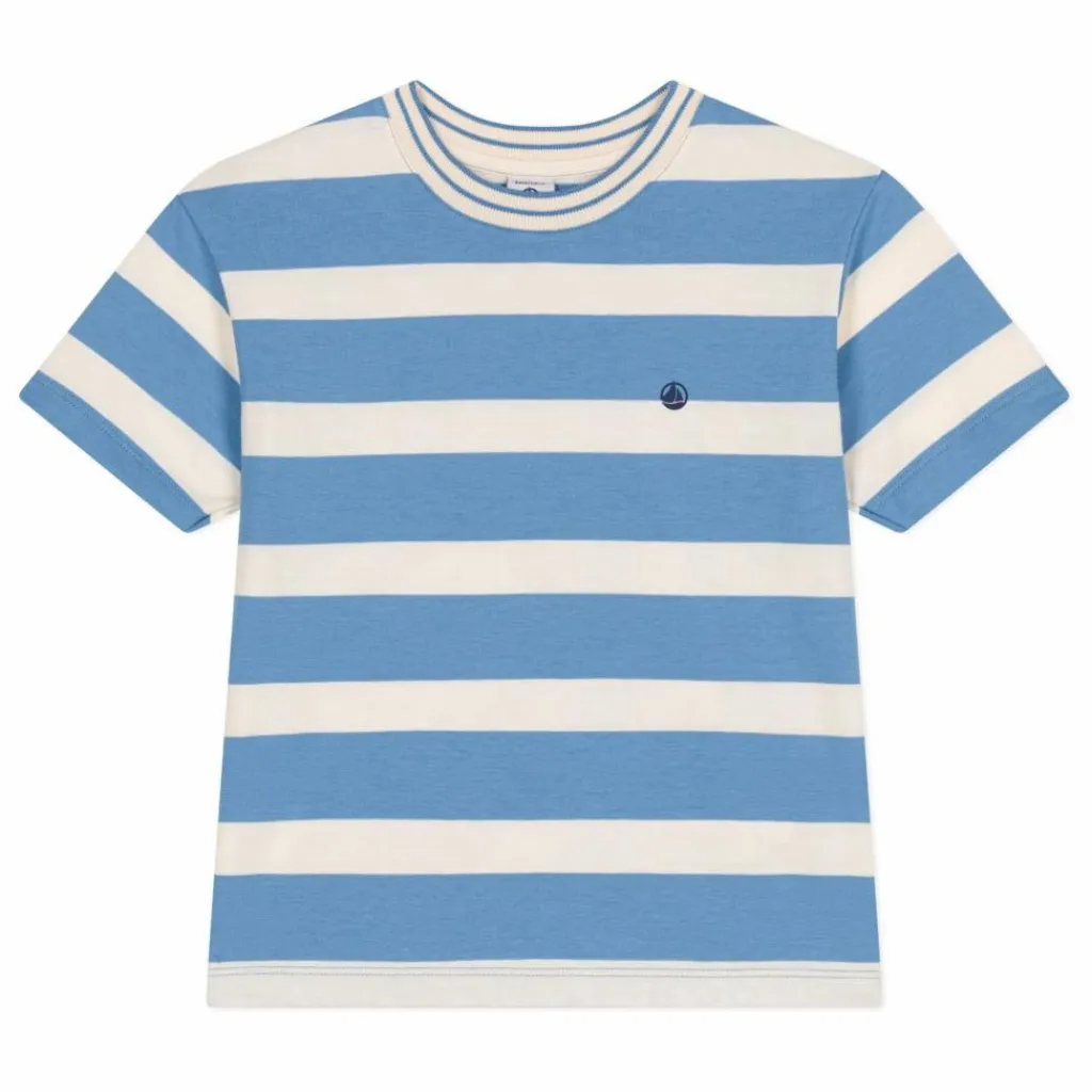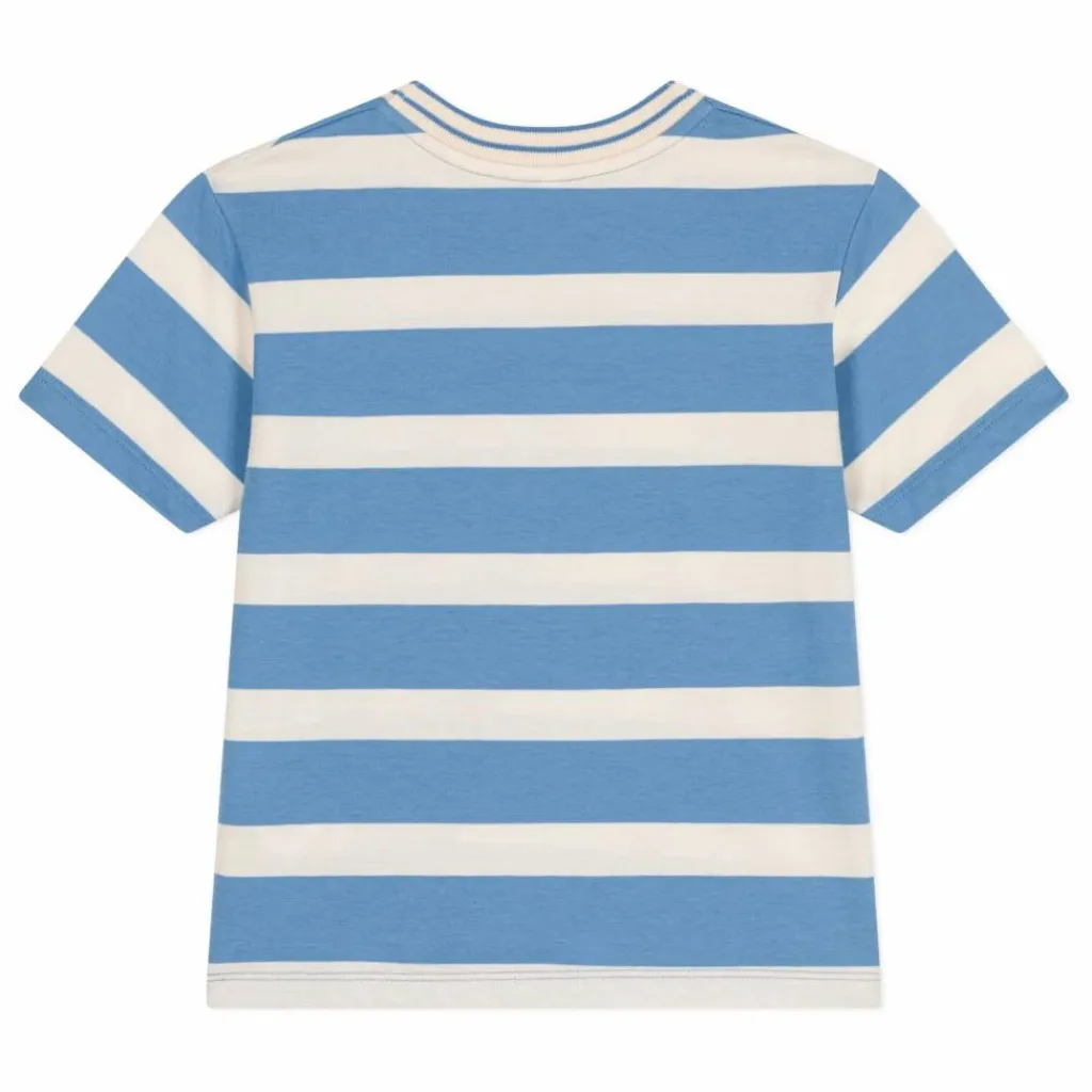 - T-shirt en jersey léger rayé, une matière souple et confortable qui garde sa forme. La coupe « loose », avec des manches en T, est un T-shirt légèrement plus large, en phase avec les tendances actuelles, pour un look encore plus contemporain. Col à rayures contrastées. Tous les petits garçons ont besoin d’un tee-shirt rayé dans leur garde-robe !