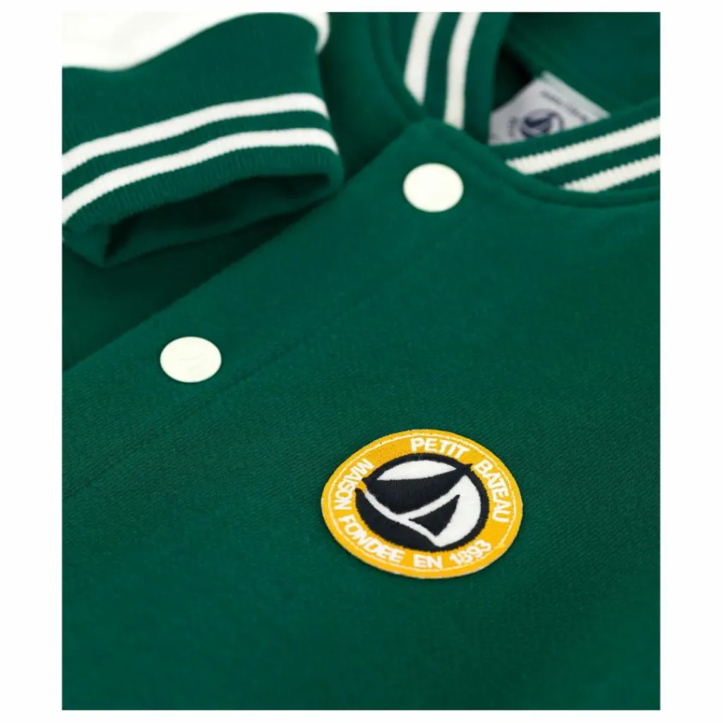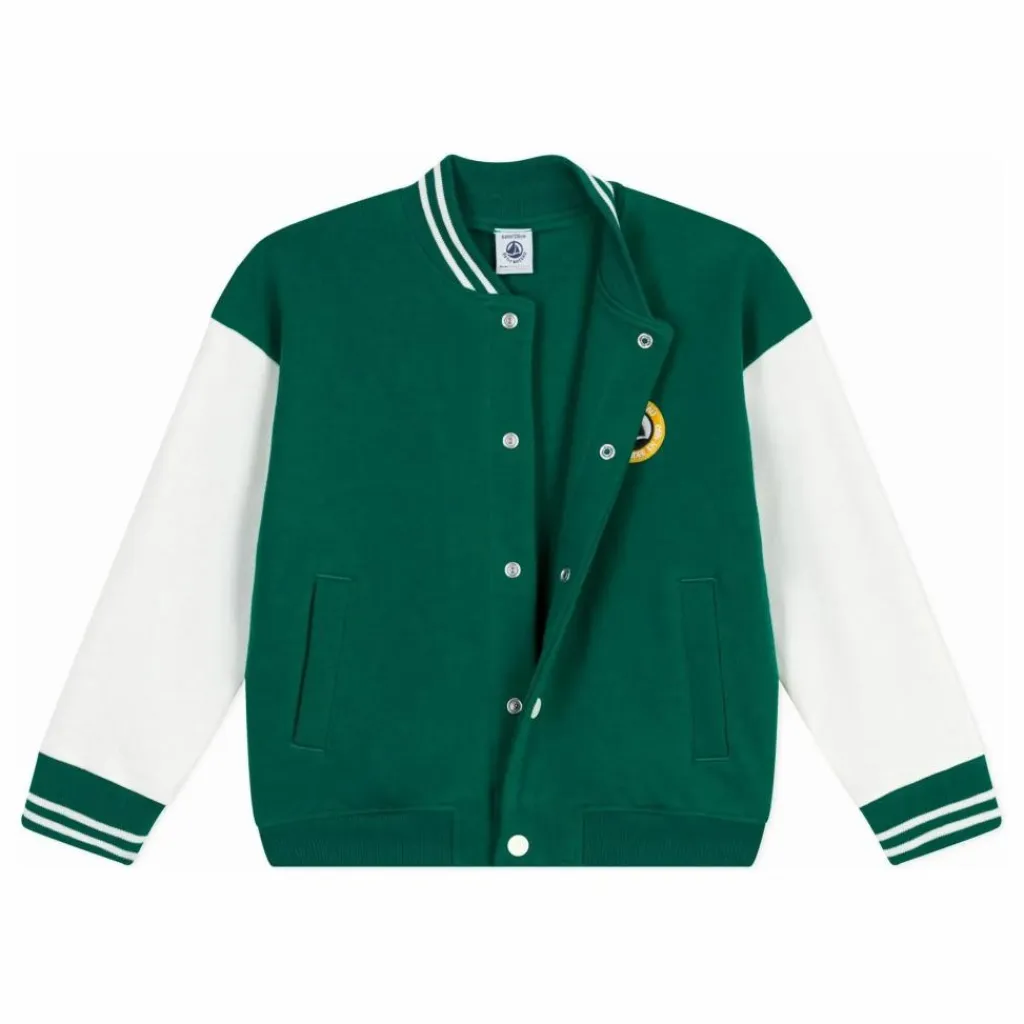 - La veste de mi-saison intemporelle pour une tenue casual chic grâce à son look collège et ses empiècements contrastés. On aime les belles finitions : coupe ample, bord-côtes rayés et badge Petit Bateau brodé sur la poitrine.