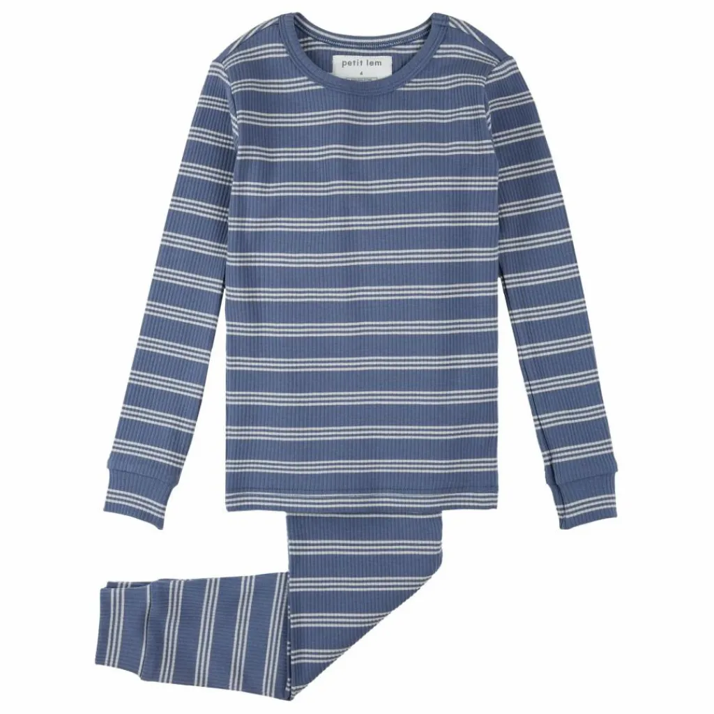 - Ensemble pyjama à rayures bleu marine en modal côtelé