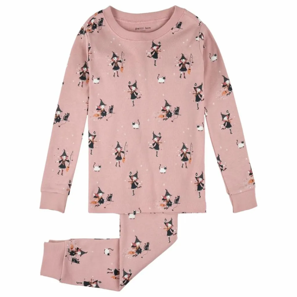 - Ensemble pyjama rose rétro à imprimé « Sorcières » phosphorescent