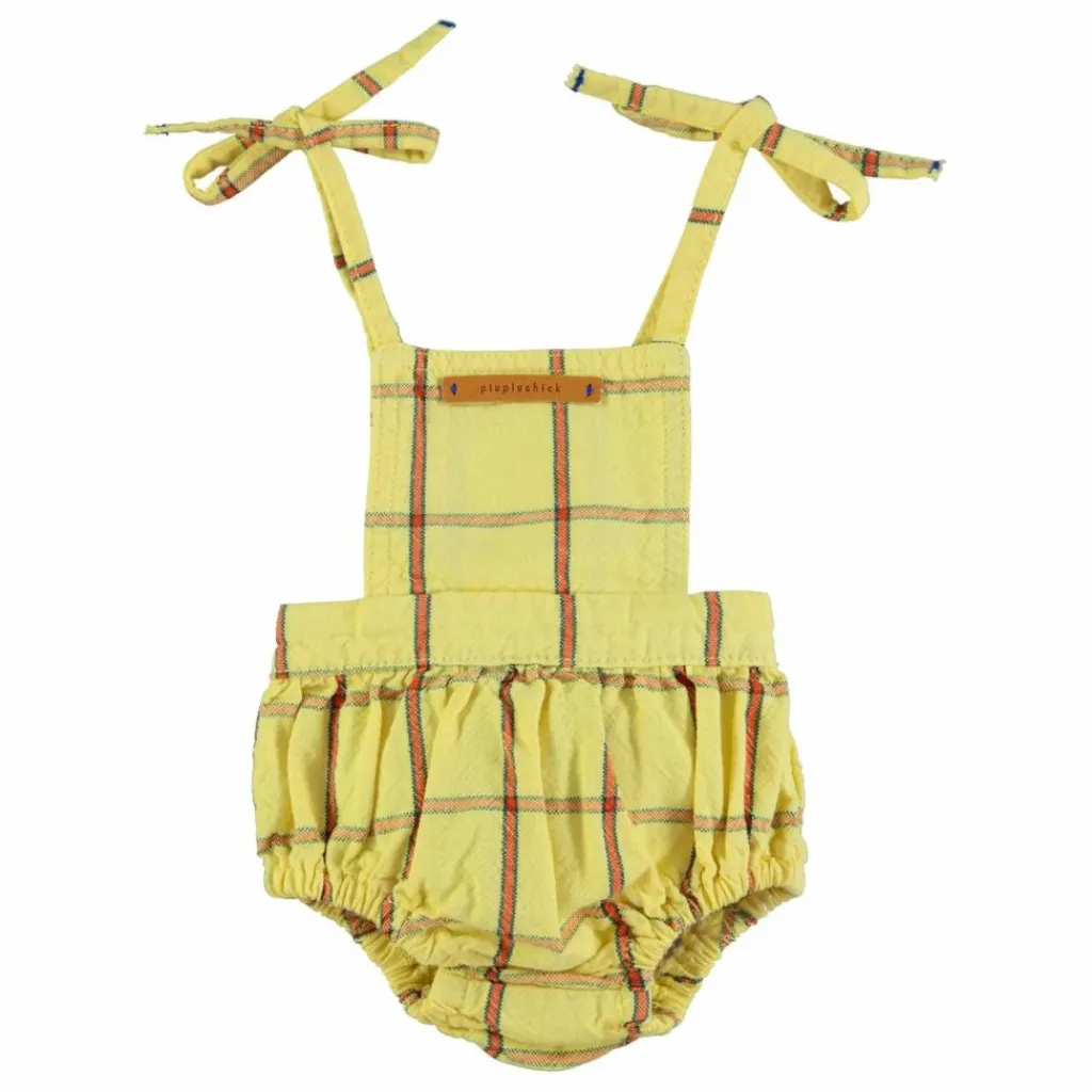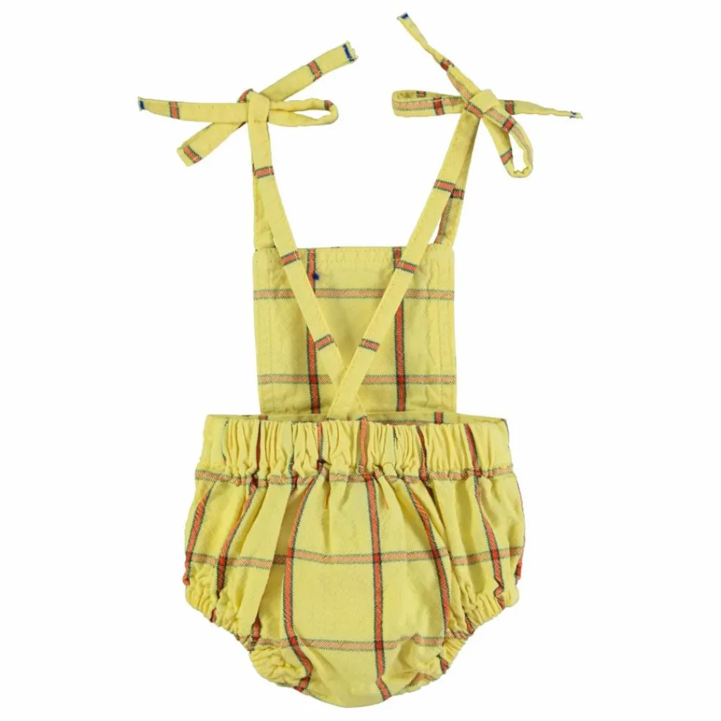 - Combinaison en toile de coton avec fines bretelles à nouer. Elastique aux cuisses et à la taille. Étiquette logo en cuir sur la poitrine.