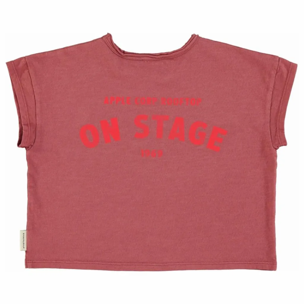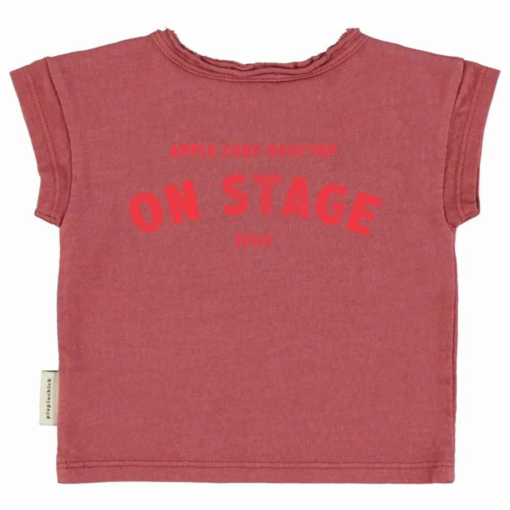 - T’shirt avec col en bord brut. Détaillé avec des imprimés devant et derrière. Boutons sur l’épaule pour les tailles bébé.