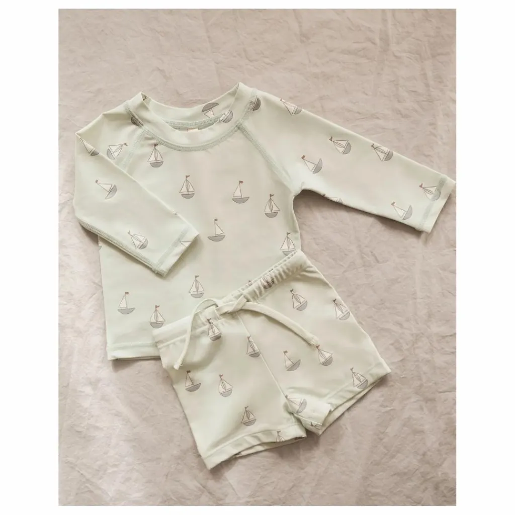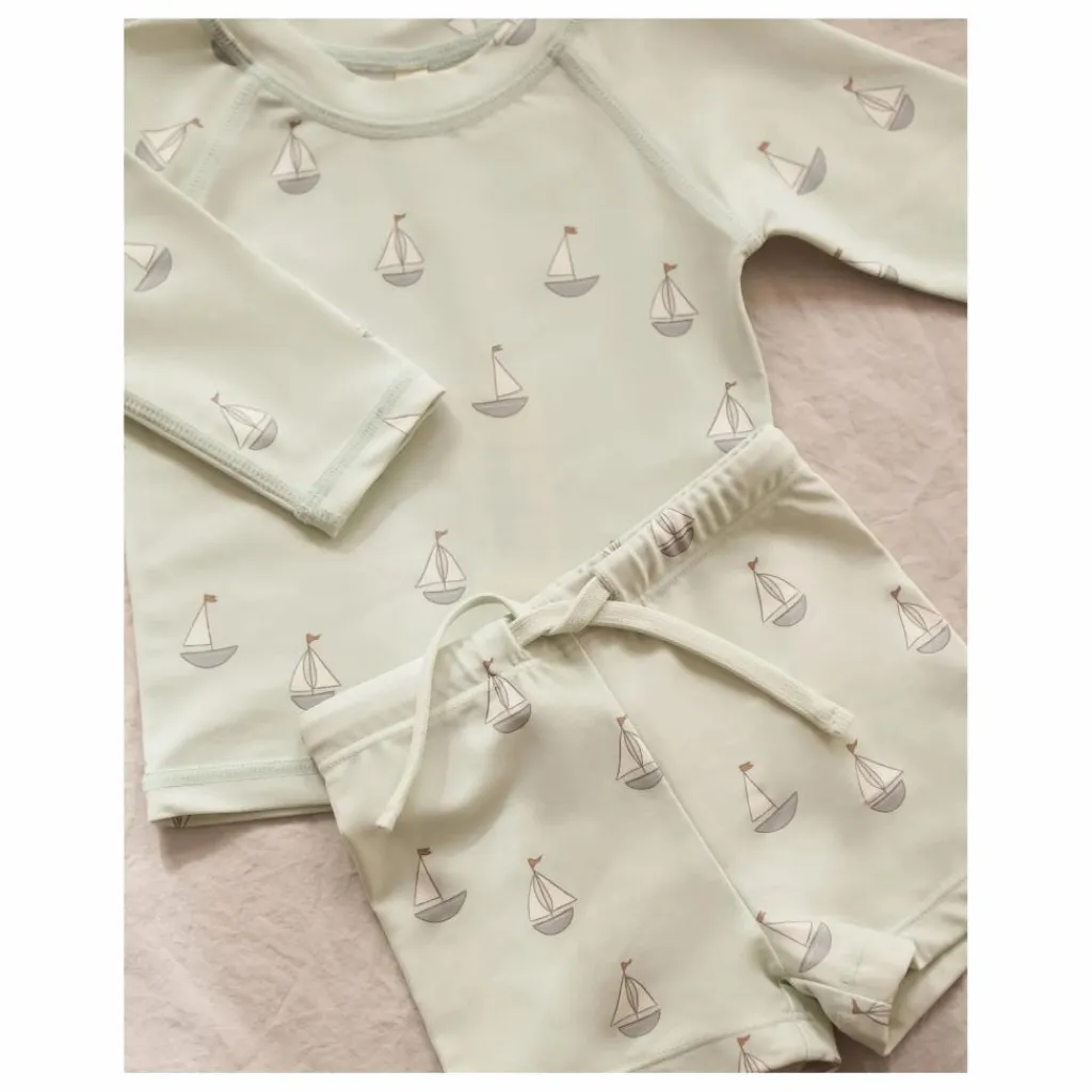 - Cet ensemble de deux pièces protégera votre enfant du soleil avec style. Il se compose d’un haut à manches longues et d’un short pour garçon coordonné, avec un facteur de protection solaire de 50+ et notre imprimé « voiliers » dans une teinte ciel. Mettez le cap sur les aventures estivales dans ce style cool. Entretien : Laver à la machine à froid sur linge délicat. Séchage suspendu. 80 % de polyester recyclé / 20 % d’élasthanne.