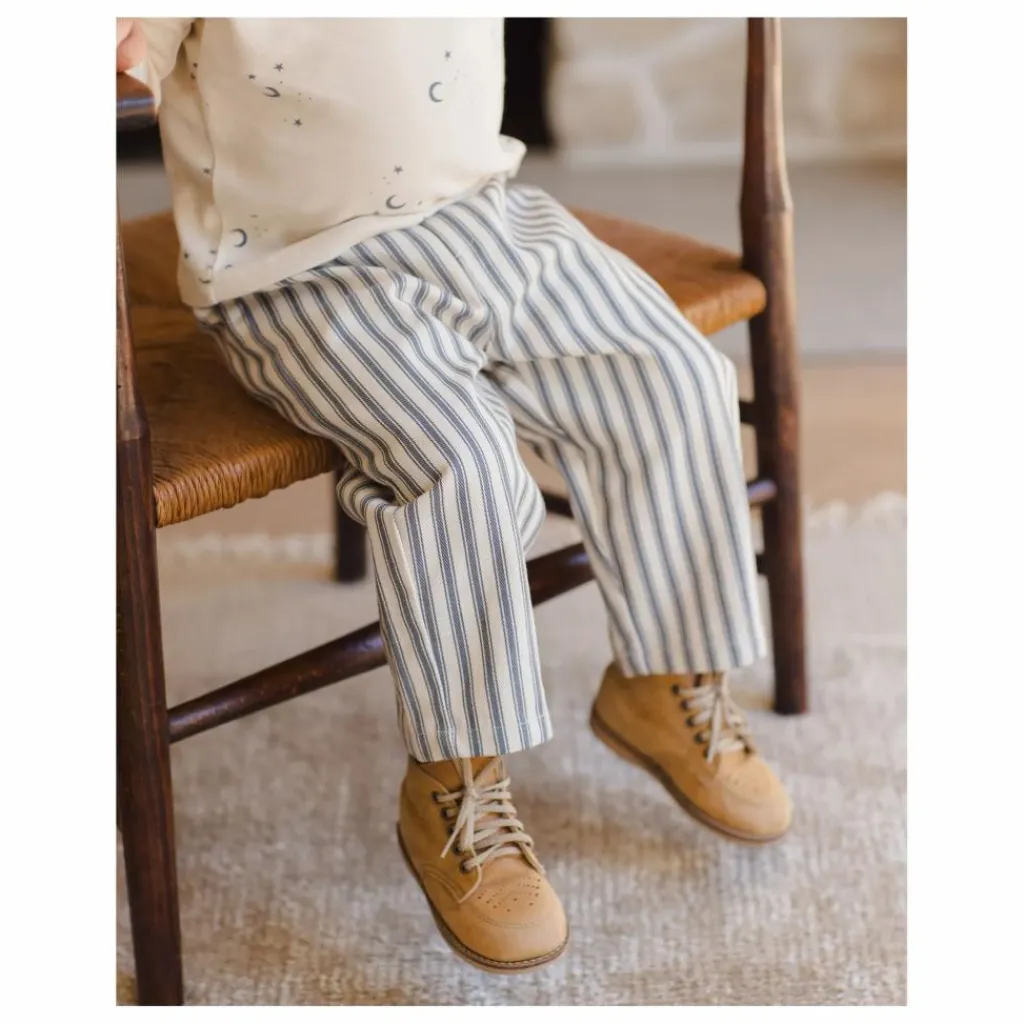 - Notre pantalon Grayson est fabriqué en denim de coton doux et présente une silhouette classique et décontractée, avec une taille élastique pour un confort optimal tout au long de la journée.