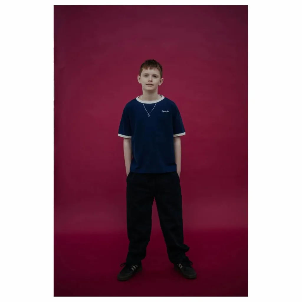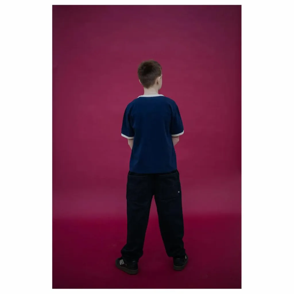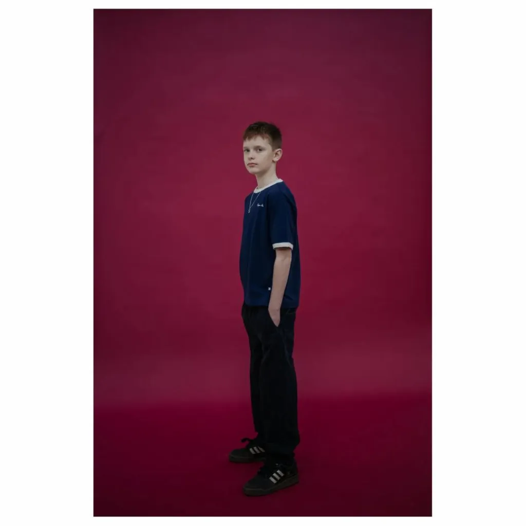 - Tee Shirt – Cosmic Navy Un tee-shirt bleu marine à l’allure rétro, grâce aux détails contrastés du col et des manches. Un logo brodé sur le devant apporte un accent subtil. Le logo brodé sur le devant apporte un accent subtil. Doux et respirant, il se porte tous les jours. Matières : 100% coton biologique