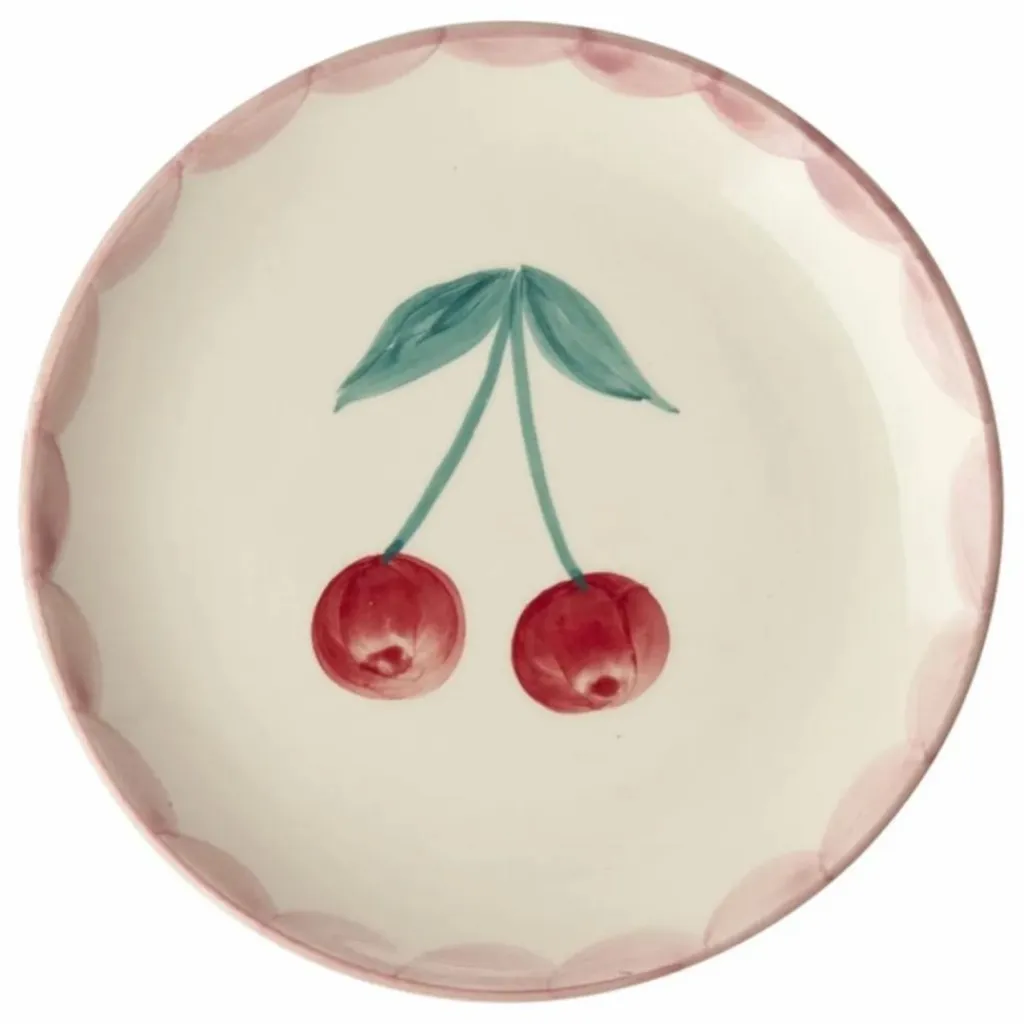 - Assiette à gâteau en céramique avec cerise peinte à la main