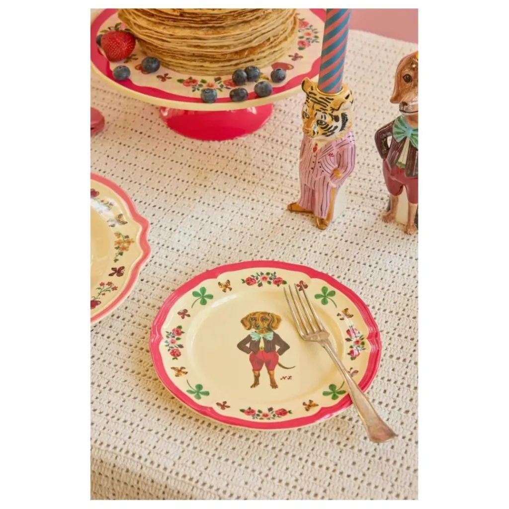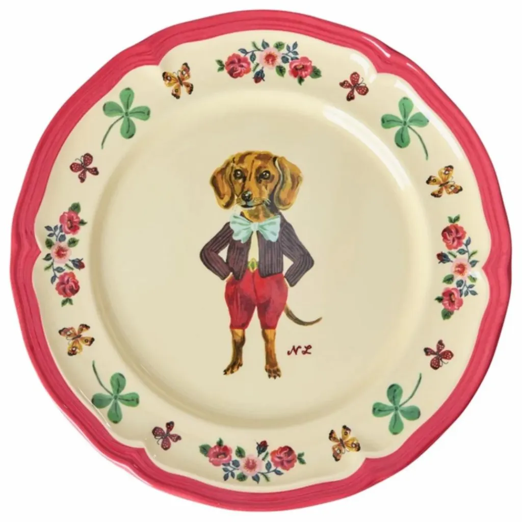- Une collaboration fantaisiste : RICE x Nathalie Lété – transformer les moments quotidiens en petites expériences magiques, une assiette à la fois ! Cette charmante assiette d’appoint présente un bord d’inspiration vintage et un chiot stylisé en son centre. Fabriquée en mélamine durable, elle est parfaite pour un usage quotidien grâce à sa résistance et à sa surface facile à nettoyer. Veuillez noter qu’elle ne convient pas au four à micro-ondes.