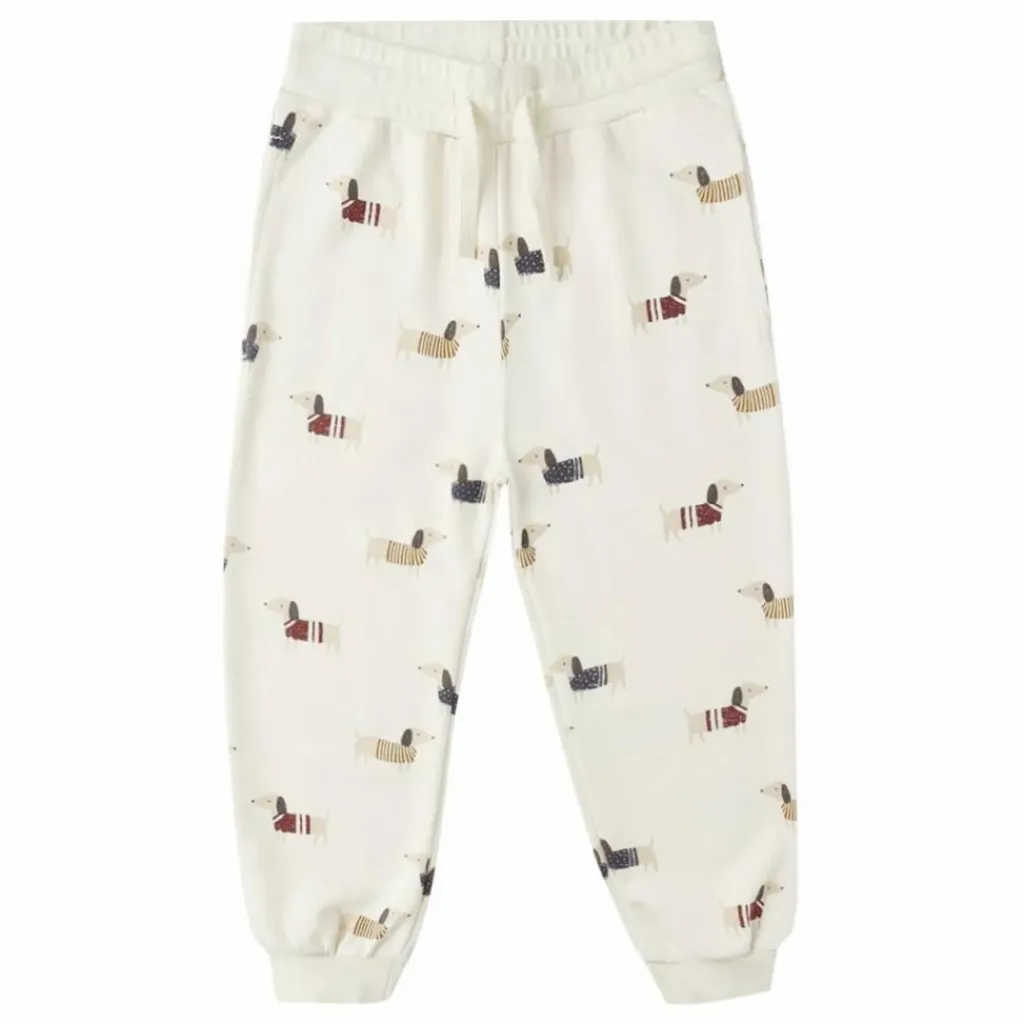 - Pantalon de jogging à la coupe décontractée en tissu éponge français, doté d’un cordon de serrage élastique à la taille et de poches latérales. Il s’associe parfaitement à notre sweat-shirt décontracté et arbore notre imprimé » teckel » sur notre teinte » naturelle « .