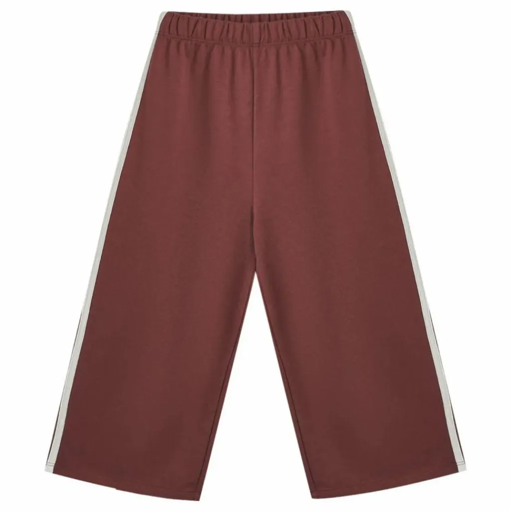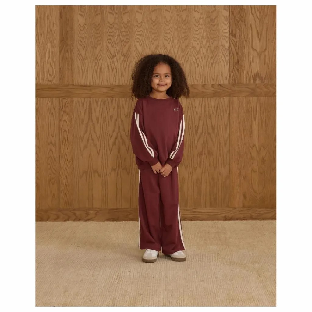 - Le sport rencontre le confort avec ce pantalon de survêtement à jambe large. Associez-le à notre sweat-shirt surdimensionné pour parfaire votre look, avec des rayures ivoire sur notre teinte bordeaux.