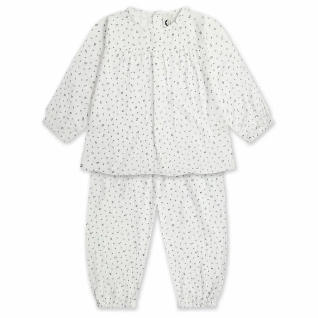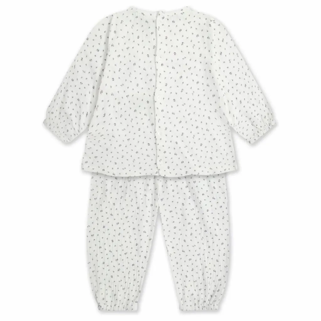 - Pyjama 2 pièces avec dos boutonné. Taille élastiquée et pantalon à revers