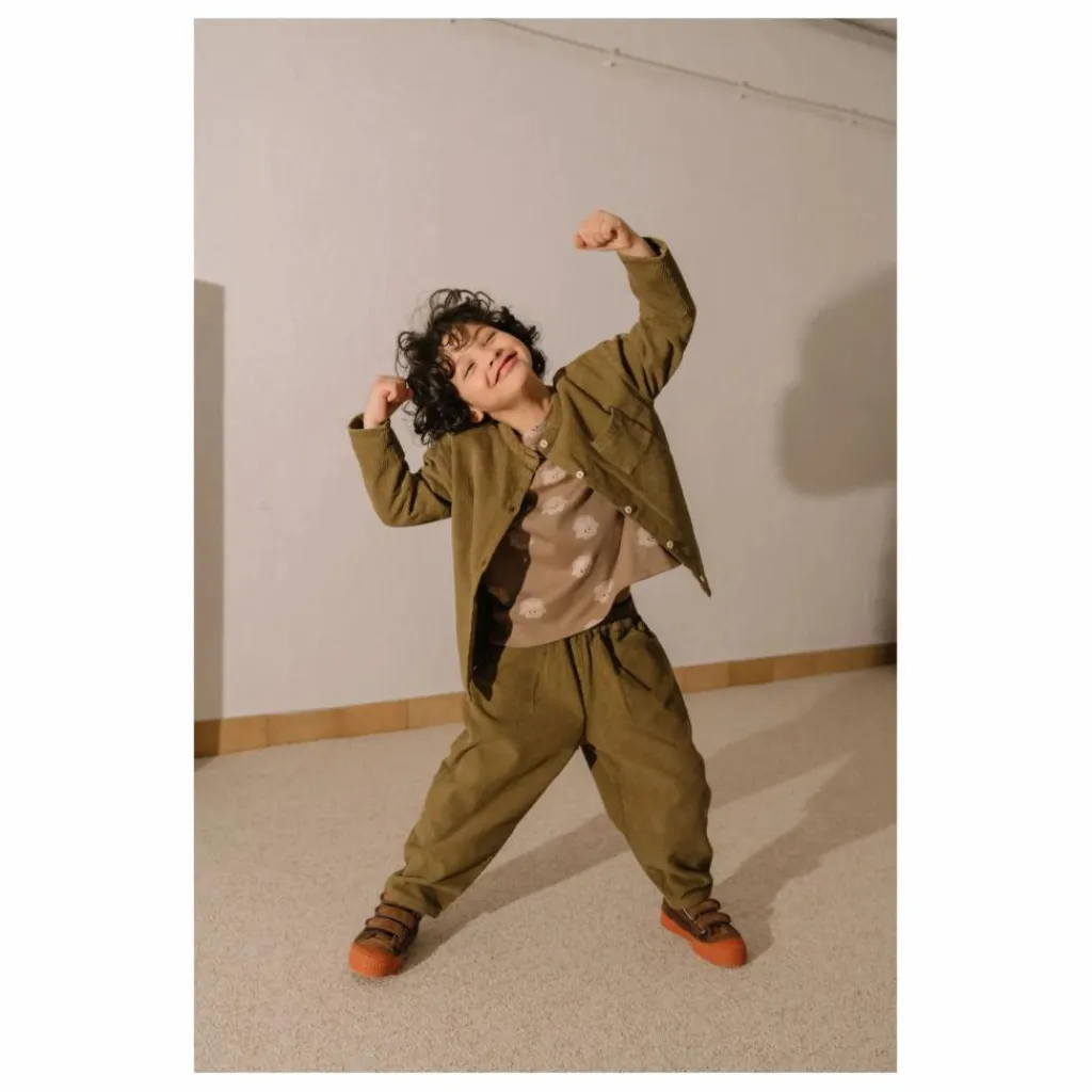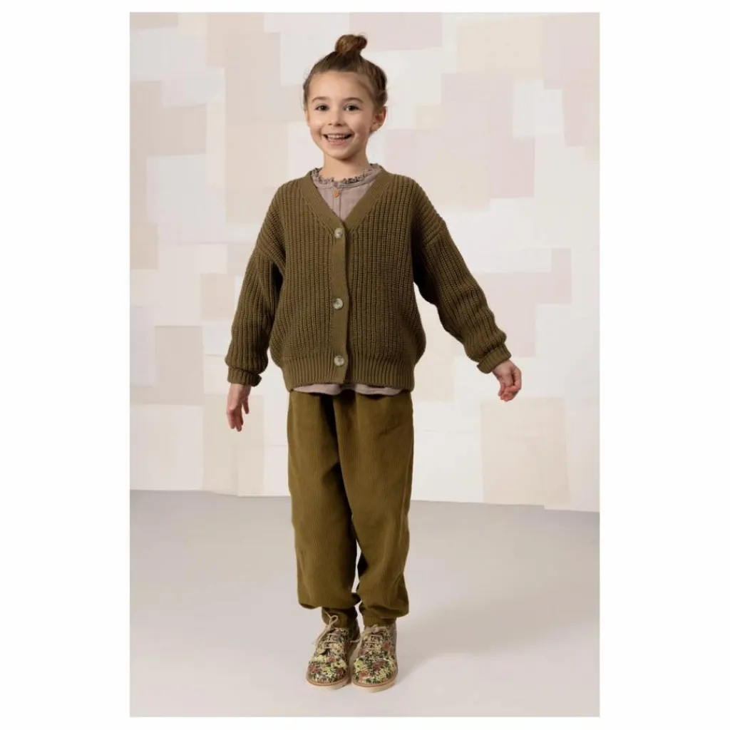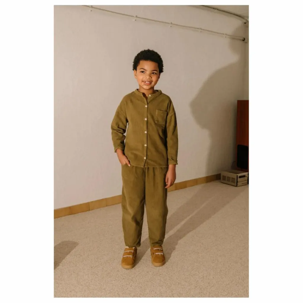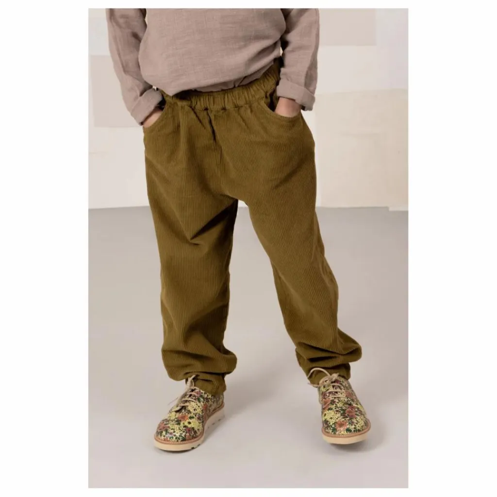 - Pantalon mixte en velours côtelé. Forme carotte confortable et pratique.
