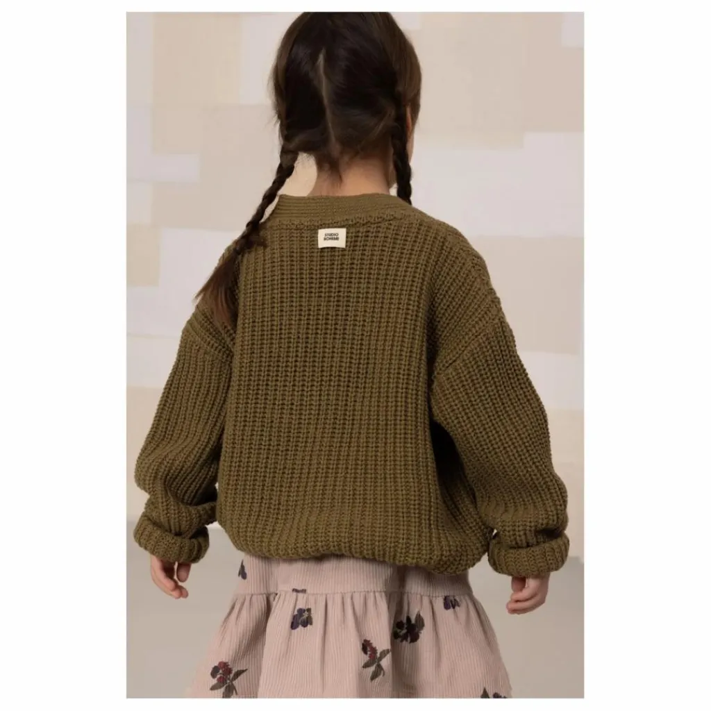 - Cardigan mixte en grosses mailles. Etiquette décorative Studio Bohème au dos.