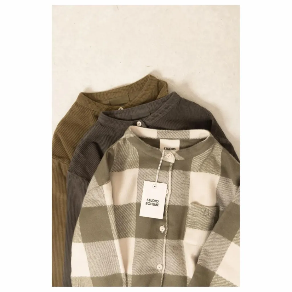 - Chemise en velours cotelé et boutons. Petite poche, avec broderie Studio Bohème.