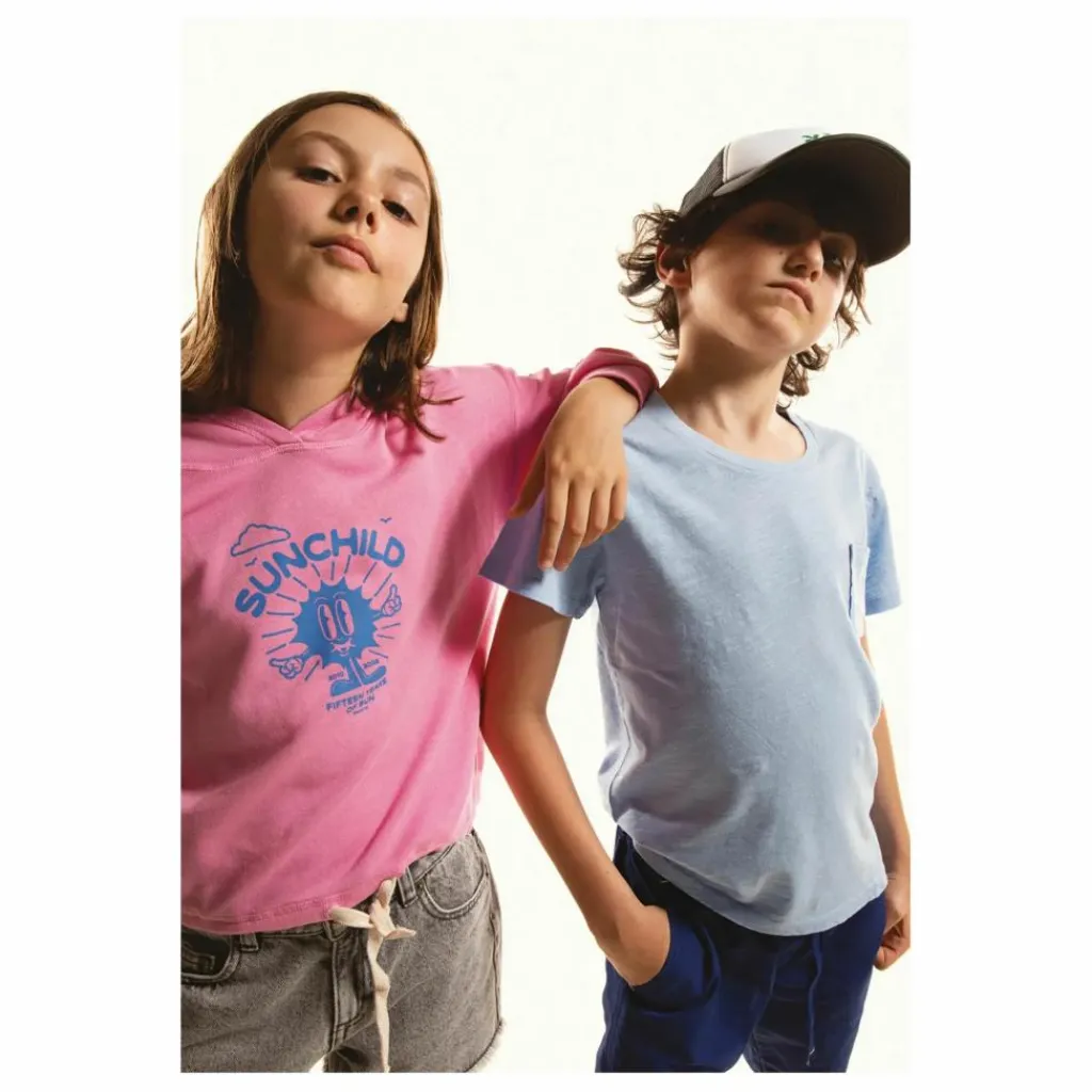 - Ourlet effiloché, accentuant l’aspect brut et décontracté. Coutures apparentes. Bouton métallique gravé et fermeture éclair. Cinq poches avec rivets métalliques pour un style classique et fonctionnel. Étiquette et broderie « Sunchild » sur la poche avant. Elastique boutonnières à la ceinture intérieure