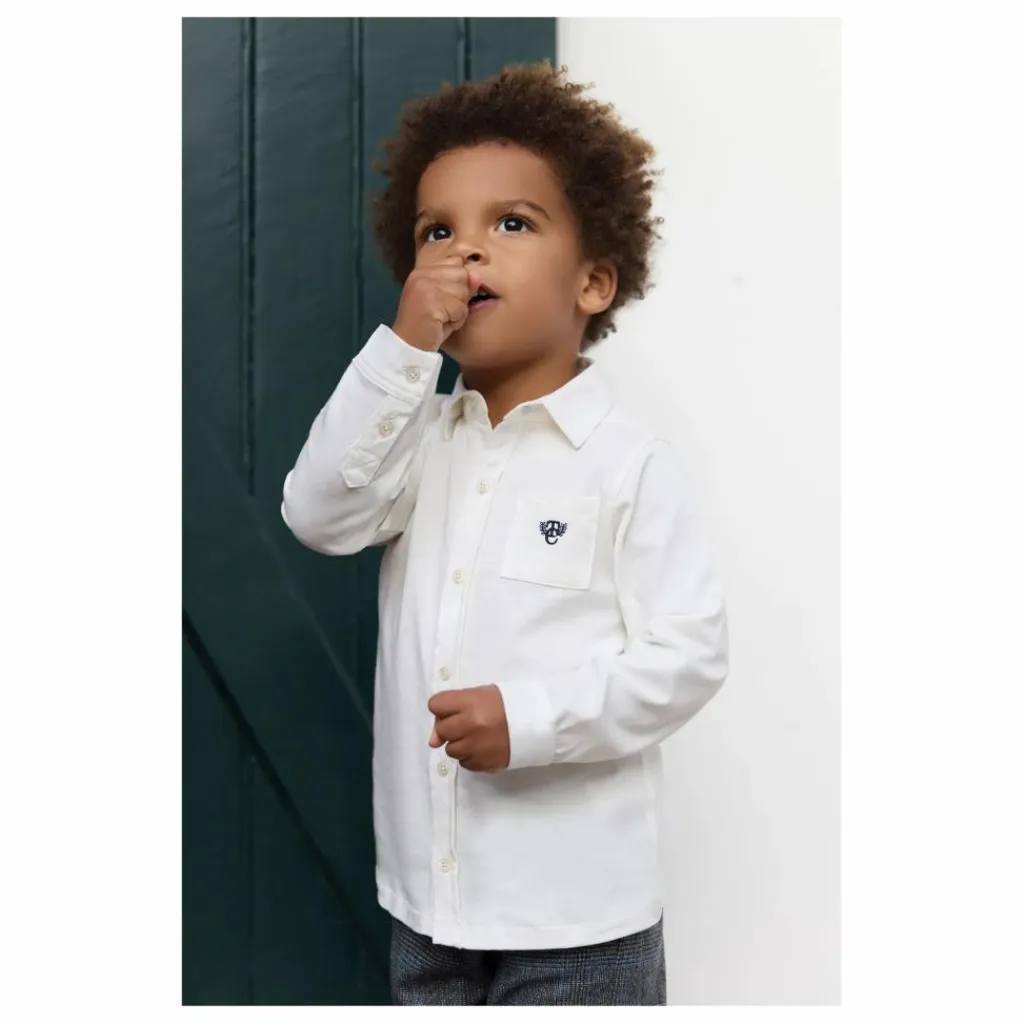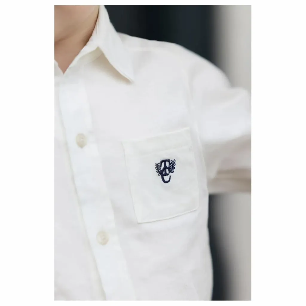 - Cette chemise pour bébé garçon, en coloris écru, se distingue par son allure épurée et intemporelle. Sa poche plaquée sur le devant est délicatement ornée du monogramme TC, ajoutant une touche discrète de raffinement. Confectionnée avec soin, elle allie confort et élégance pour accompagner les tout-petits en douceur, dès leurs premiers instants.