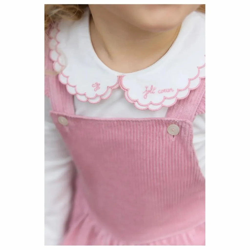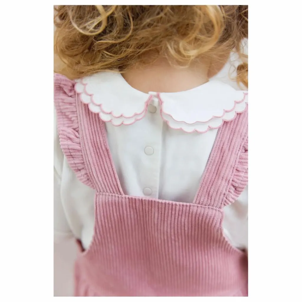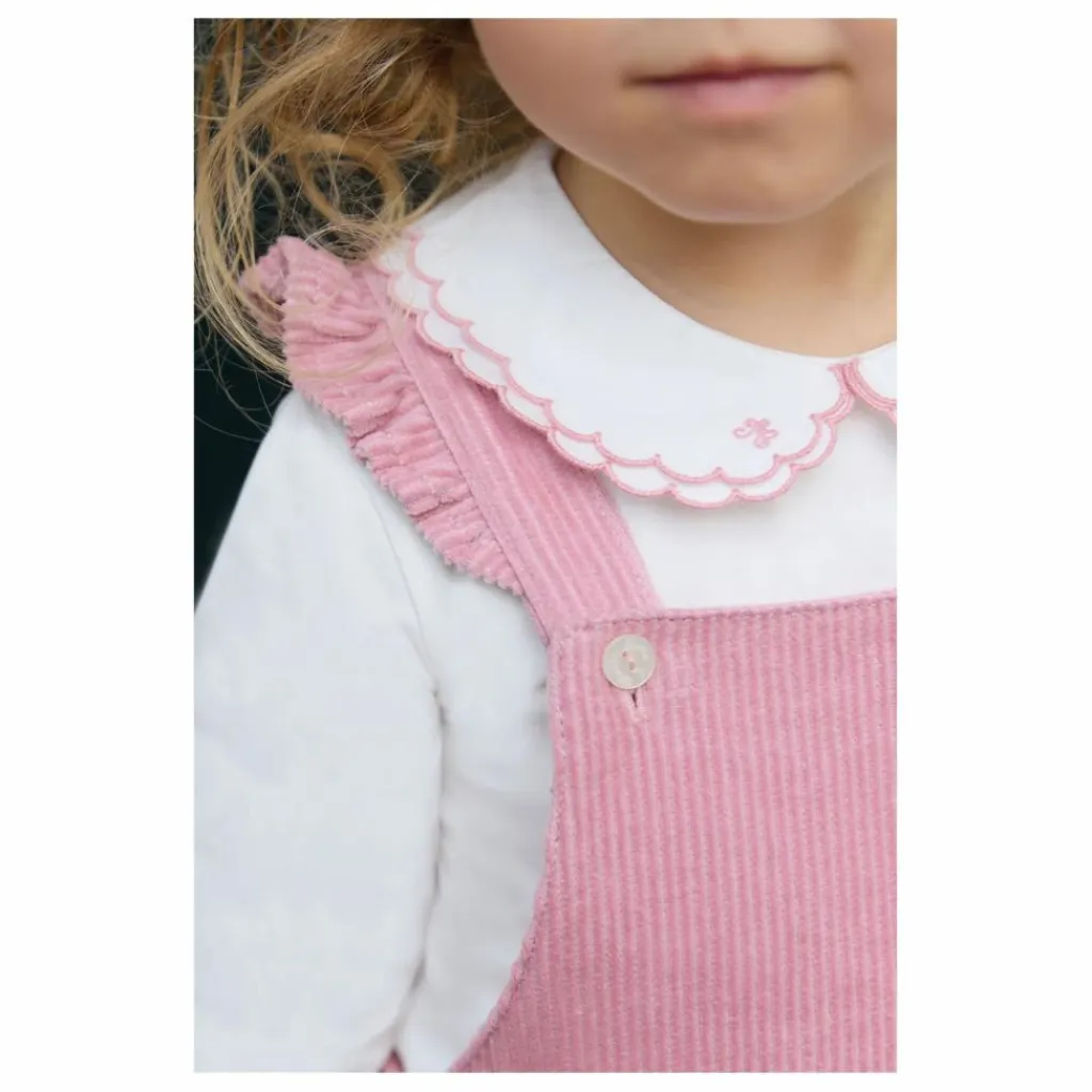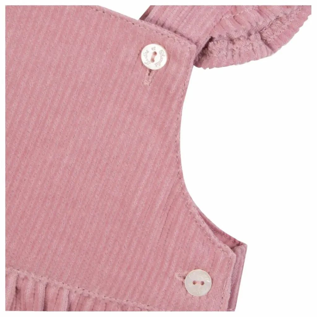 - Cette salopette longue pour bébé fille, en velours coloris églantine, charme par ses jolis volants au niveau des bretelles. Les détails boutons viennent parfaire cette pièce à la fois douce et élégante, idéale pour accompagner les premiers mois avec tendresse et style.