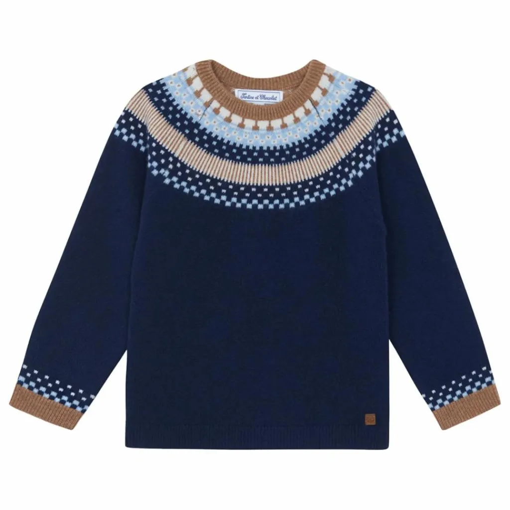 - Ce pull pour junior garçon, en coloris marine, séduit par son motif jacquard au niveau du col, décliné dans des teintes de beige qui apportent une touche graphique et chaleureuse. Confectionné en laine, il offre une douceur naturelle et une chaleur idéale pour les journées fraîches. Un essentiel du vestiaire hivernal, parfait pour composer des tenues à la fois tendance et cosy.
