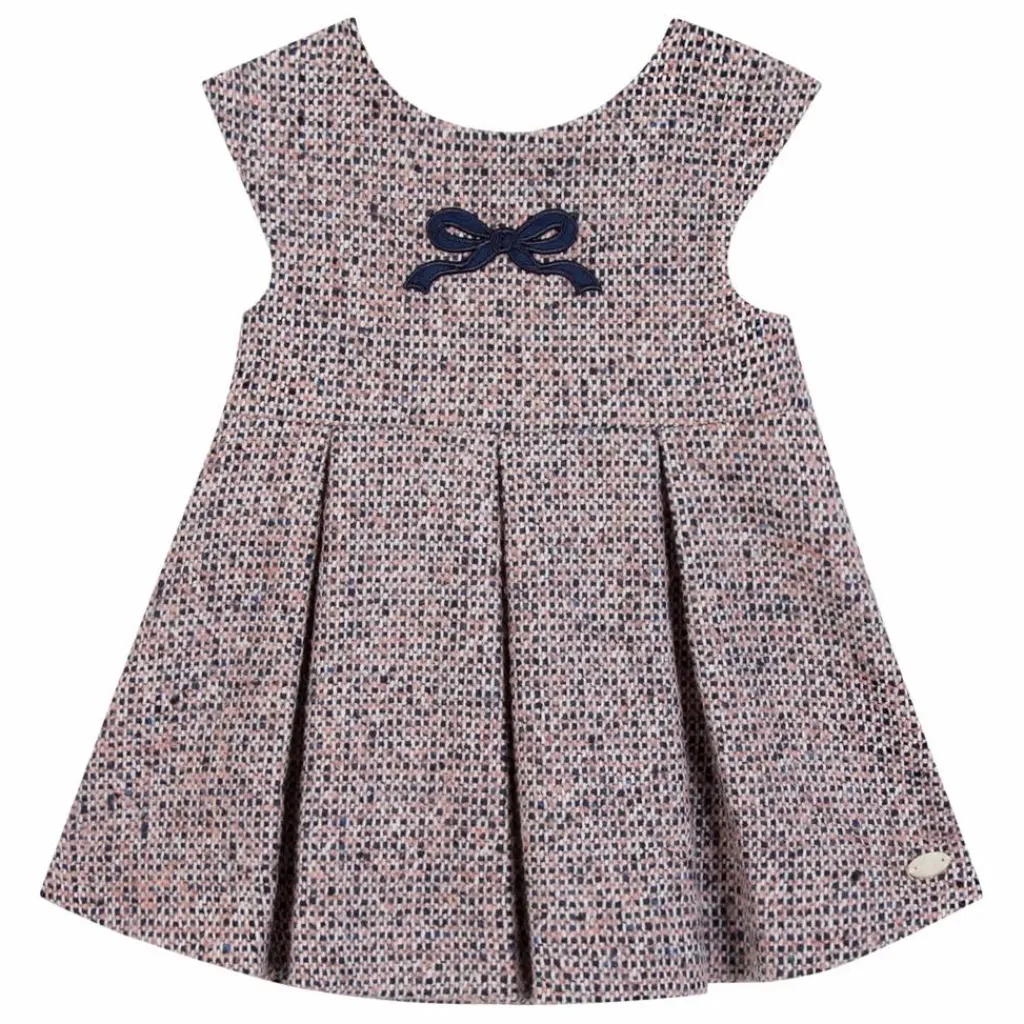 - Cette robe pour bébé fille, en couleur églantine et confectionnée en tweed, se distingue par un joli nœud situé sous le col, ajoutant une touche délicate et raffinée. Le bas de la robe plissé apporte volume et élégance à la silhouette. Une pièce douce et élégante, idéale pour habiller bébé avec confort et style.