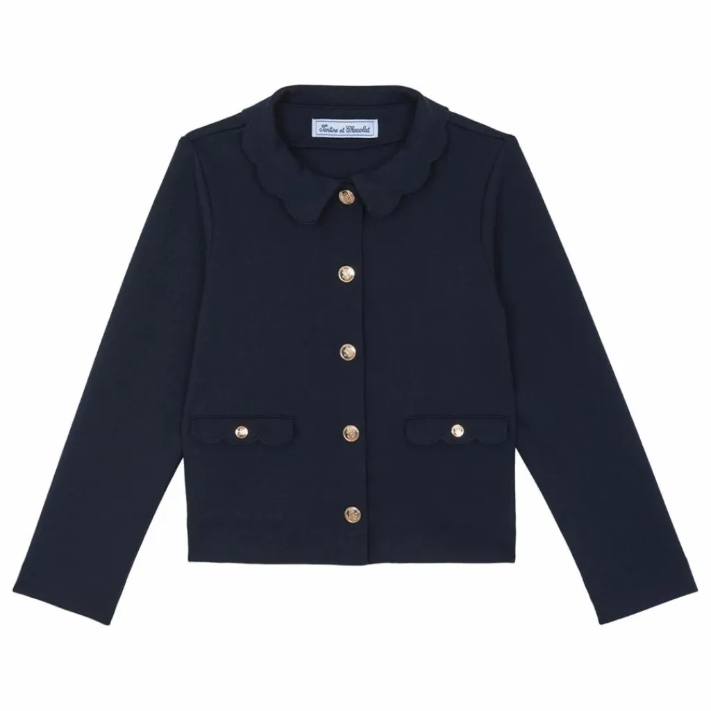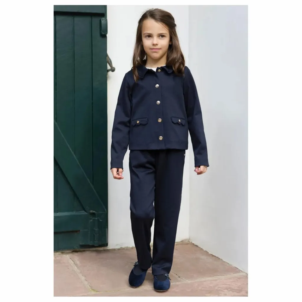 - Ensemble pour junior fille, en coloris marine, composé d’une veste délicate au col Claudine, agrémentée de poches décoratives et de boutons dorés, accompagnée d’un pantalon assorti. Un duo chic et raffiné, parfait pour habiller votre enfant avec élégance et douceur.