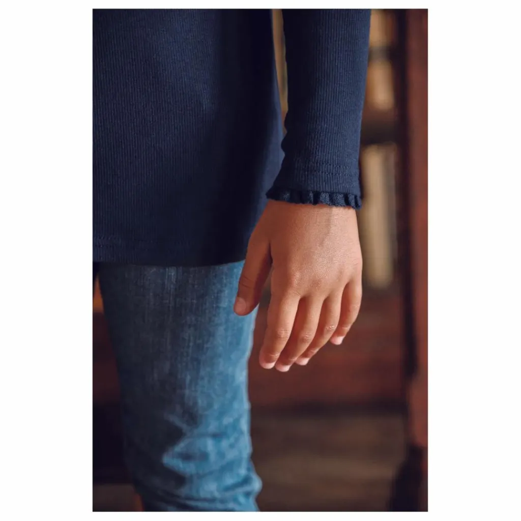 - Ce sous-pull noir au col cheminé festonné apporte une touche élégante et intemporelle aux tenues hivernales des junior filles. On craque pour son écusson hérisson doré, symbole de Tartine et Chocolat, qui ajoute un détail charmant et raffiné. À porter seul ou sous un cardigan pour une allure chic et chaleureuse.