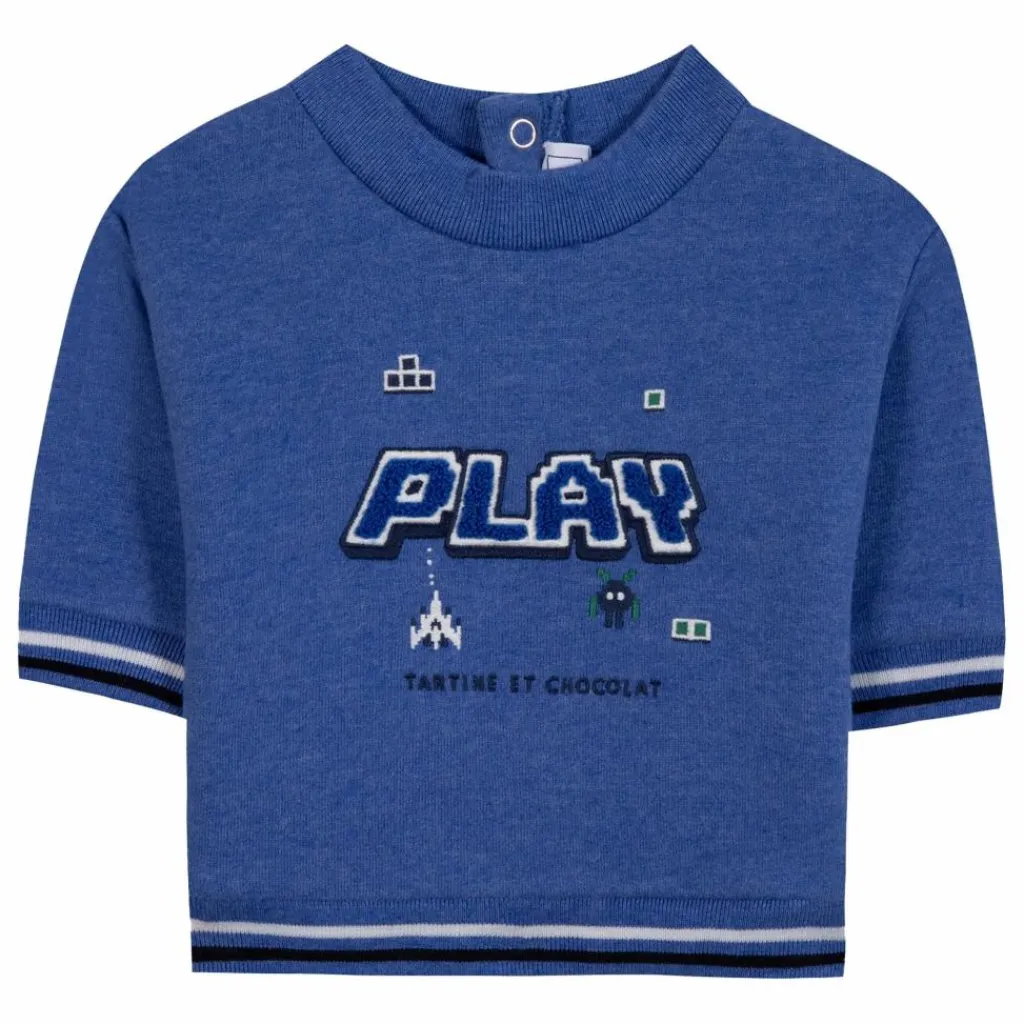 - Ce sweat pour bébé garçon, en coloris bleu électrique à effet pixel, séduit par son allure moderne et pleine d’énergie. L’inscription « Play » sur le devant évoque l’univers ludique de l’enfance, apportant une touche graphique et joyeuse. Confortable et tendance, il accompagnera les petits explorateurs avec style tout au long de la saison
