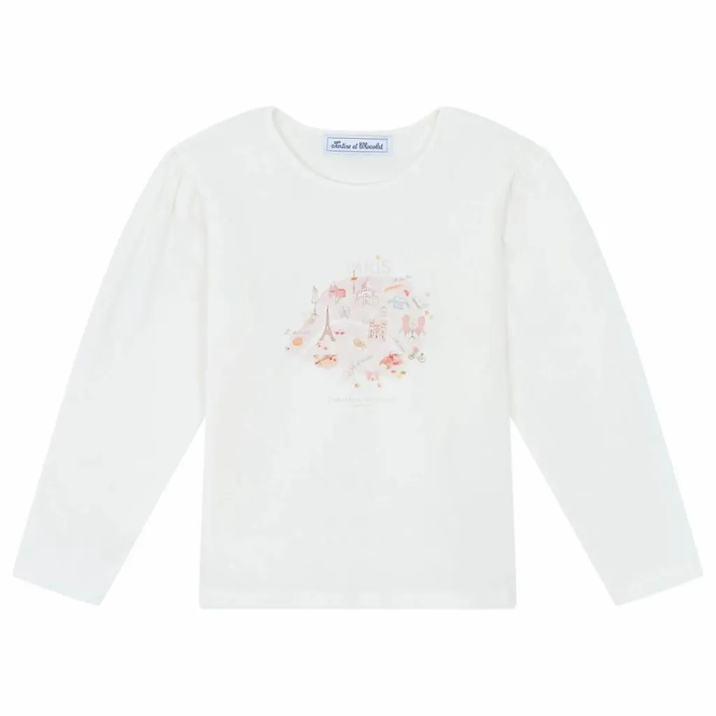 - Ce t-shirt manches longues écru pour junior fille dévoile une illustration délicate d’un plan de Paris en couleur rose, apportant une touche de douceur et de raffinement à sa tenue. Confectionné dans une matière douce, il accompagne les journées de votre petite citadine avec élégance et confort.