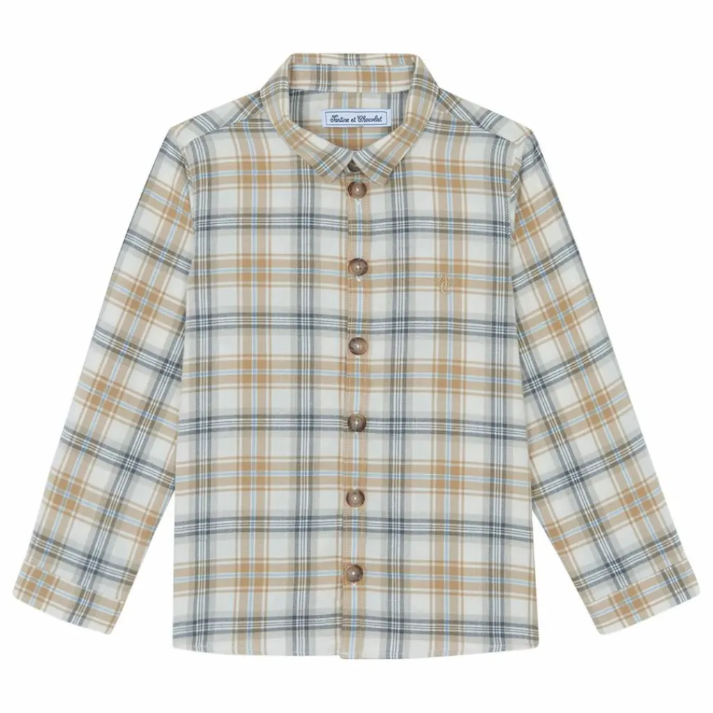 - Cette surchemise pour junior garçon, en coloris écru à carreaux, allie charme et élégance avec son col pointu et sa signature TC , apportant une touche de raffinement. Confectionnée en coton doux, elle offre un confort optimal tout en enveloppant bébé de chaleur et de douceur. Idéale pour compléter une tenue avec style, cette pièce intemporelle accompagnera les tout-petits avec élégance au fil des saisons.