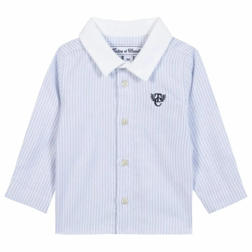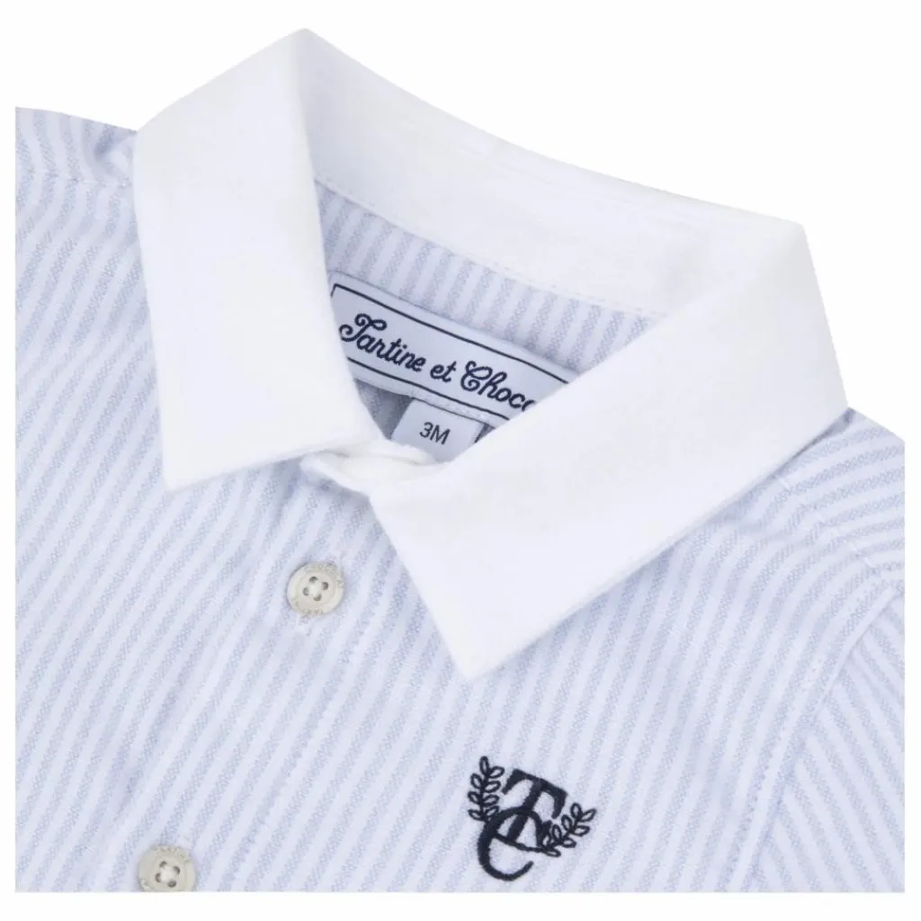- Cette chemise à manches longues pour bébé garçon, en coloris bleu ciel, se distingue par son élégance intemporelle et son monogramme TC, apportant une touche de raffinement discrète. Confectionnée en coton doux, elle assure un confort optimal tout au long de la journée. Ses boutons apparents ajoutent une note classique et sophistiquée. Idéale pour une cérémonie, cette pièce essentielle du vestiaire des grandes occasions s’associe parfaitement avec un pantalon habillé pour un look chic et sophistiqué.