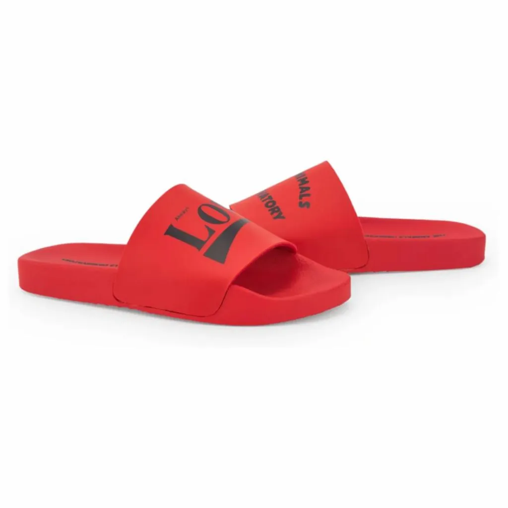 - Tongs avec le dessin du mot « love ». Amusantes et confortables, parfaites pour les journées ensoleillées.