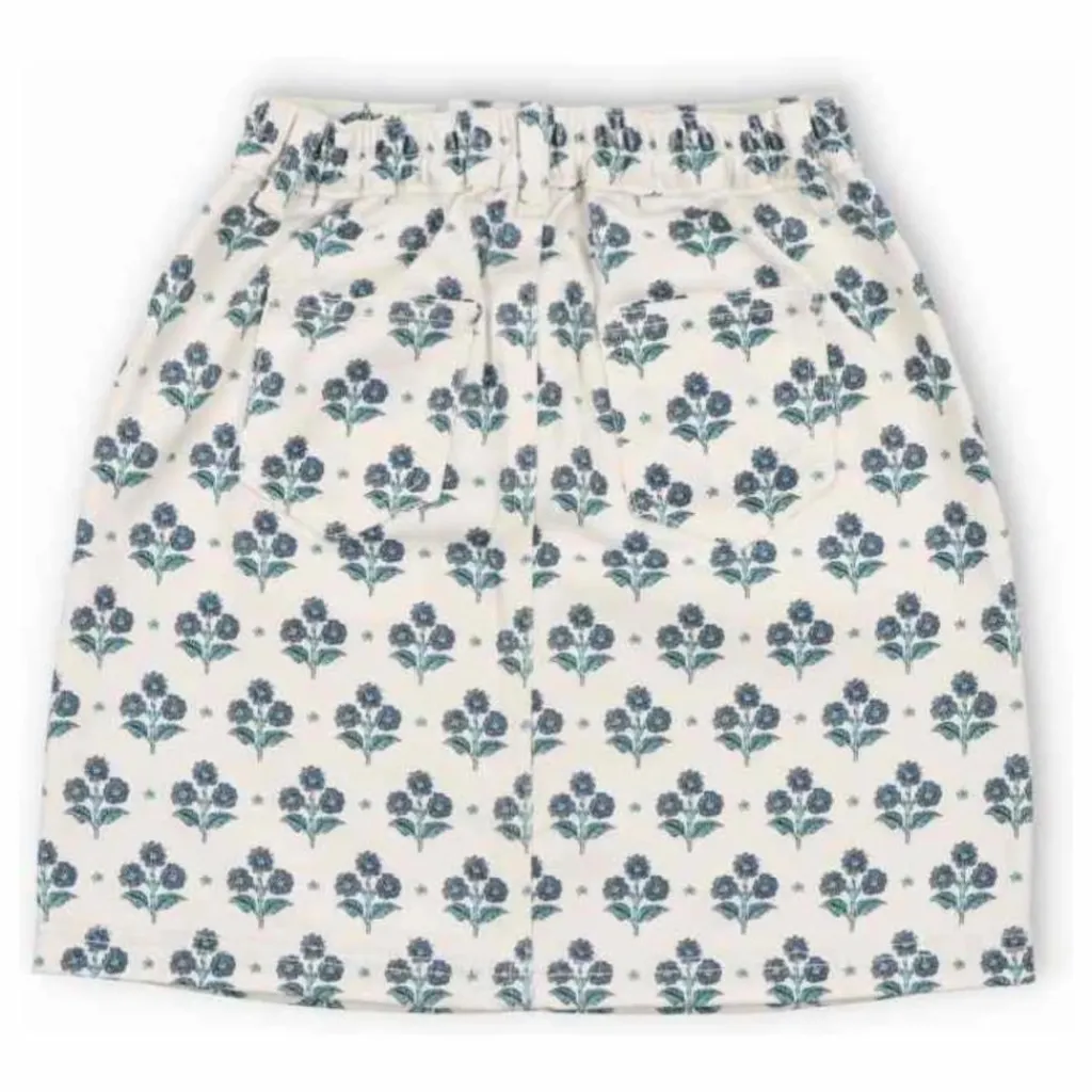 - Jupe courte en denim avec un joli imprimé et une fente sur le devant avec fermeture par bouton de marque.
