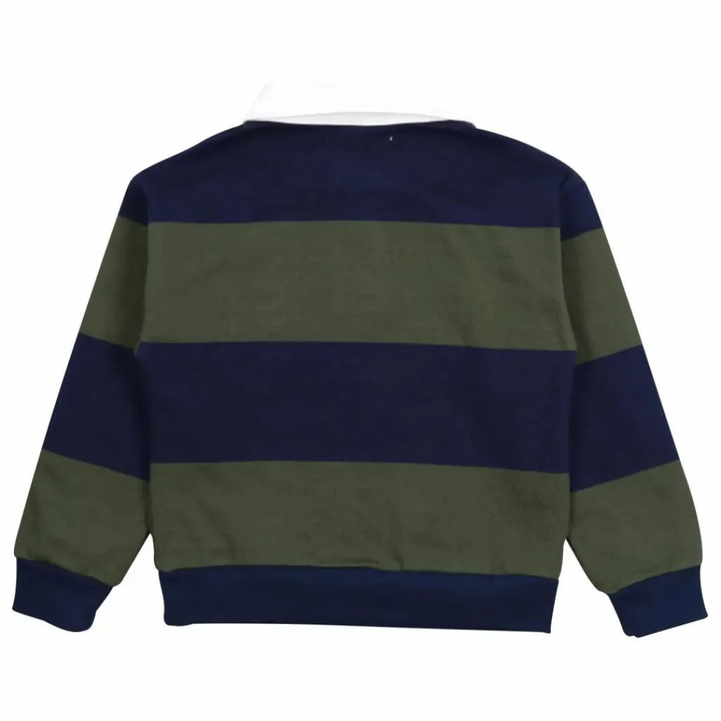 - Polo rayé bicolore en jersey épais avec col contrasté en tissu sergé. Il est orné d’un écusson en éponge TNS sur la poitrine.