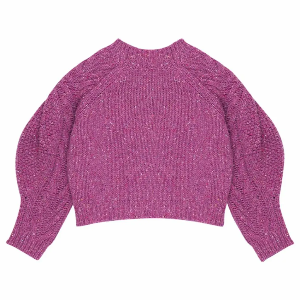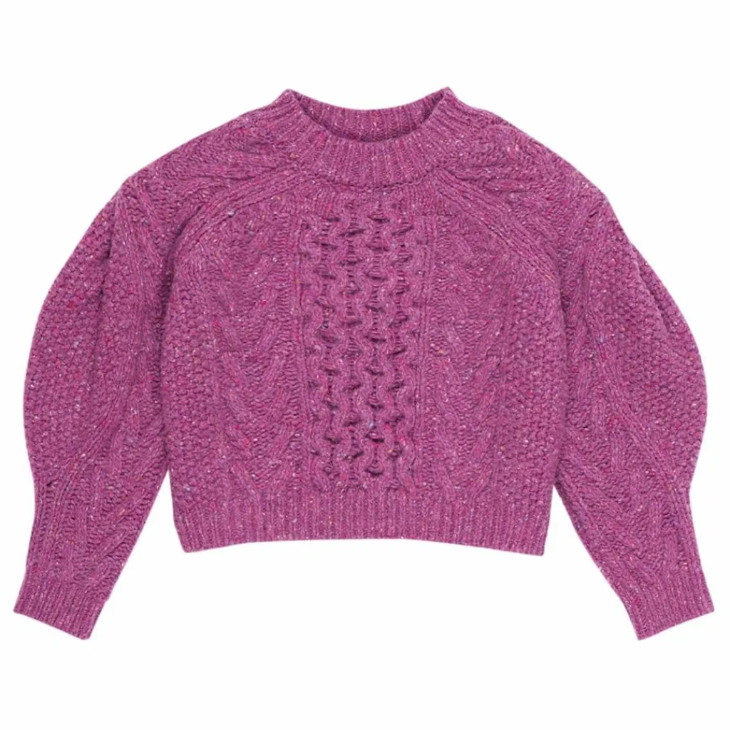 - Manches longues bouffantes, Encolure ronde, Maille torsadée, Bords-côtes
