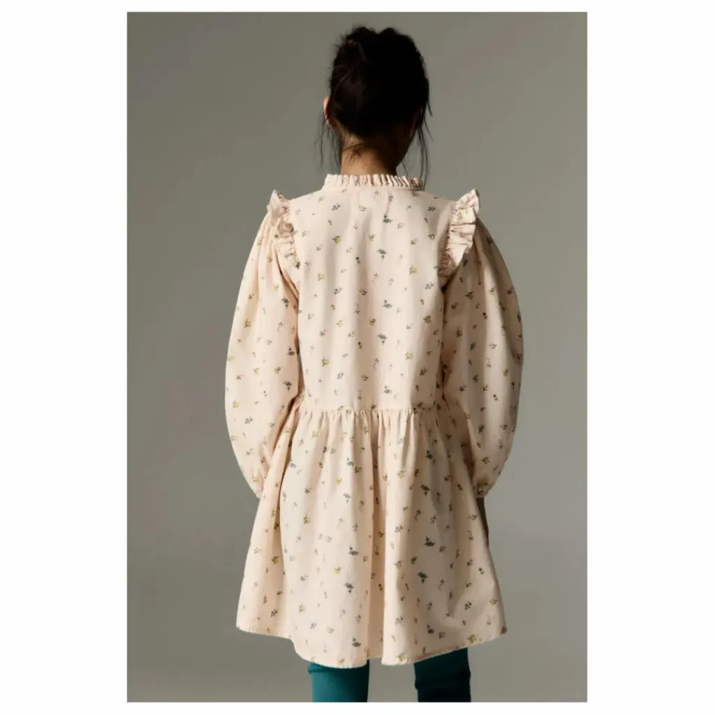 - Robe Camélia avec notre imprimé exclusif Rainbow Floral, combinant les couleurs de notre collection. La robe se distingue par de charmants volants à l’encolure et sur la poitrine, ainsi que par une ouverture avec deux nœuds, des manches amples et une taille coupée pour donner du volume à la jupe.