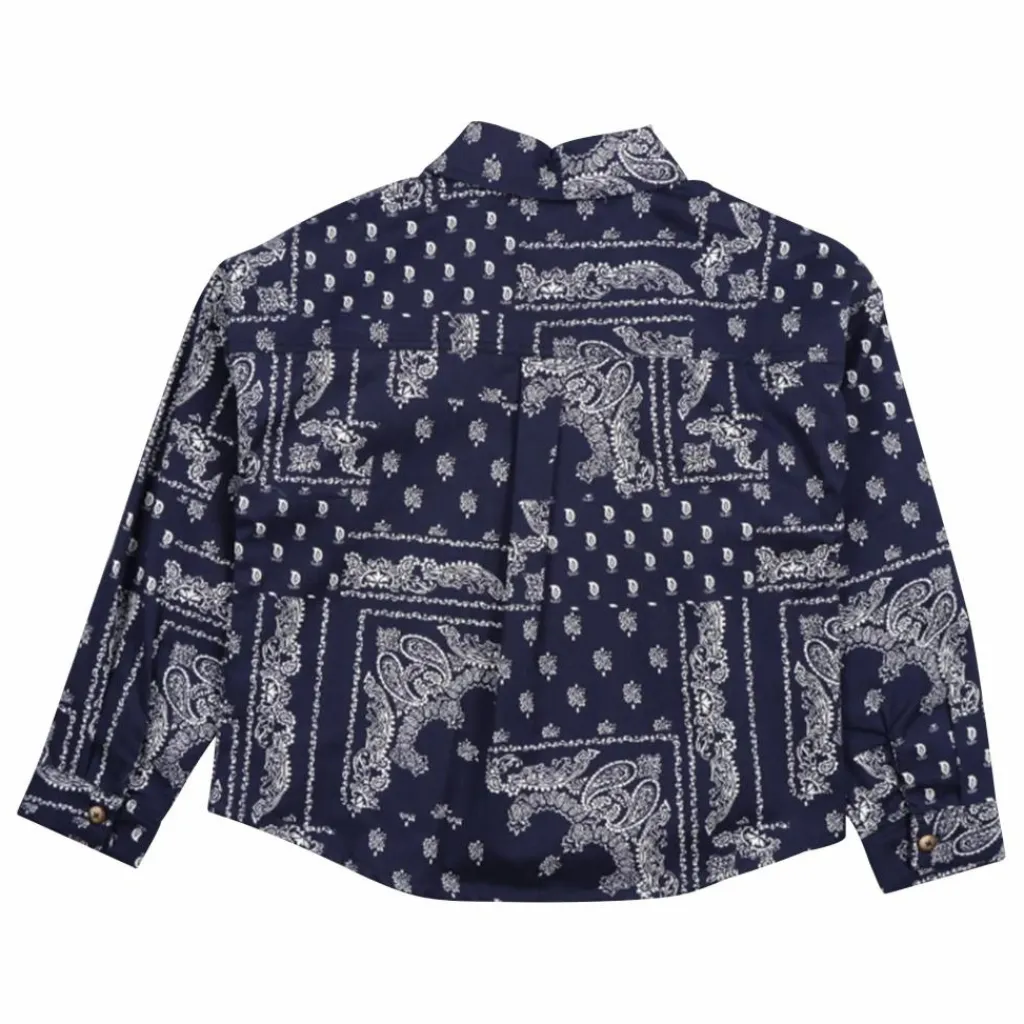 - Chemise en flanelle imprimée bandana avec broderie TNS contrastée sur la poitrine. Elle est accompagnée d’un pantalon assorti pour créer un look complet.