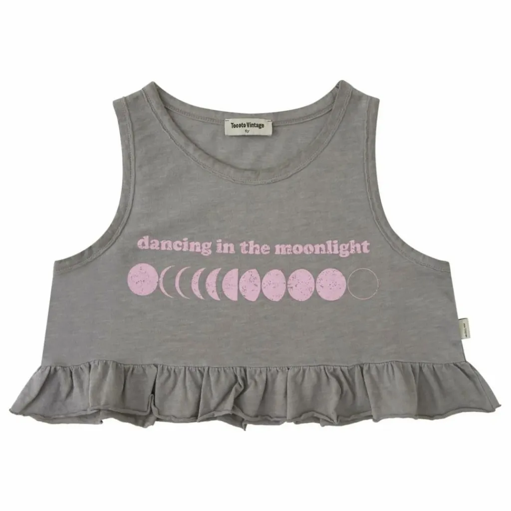 - T-SHIRT IMPRIMÉ SANS MANCHES À VOLANTS POUR FILLE « DANCING IN THE MOONLIGHT » (DANSE AU CLAIR DE LUNE)