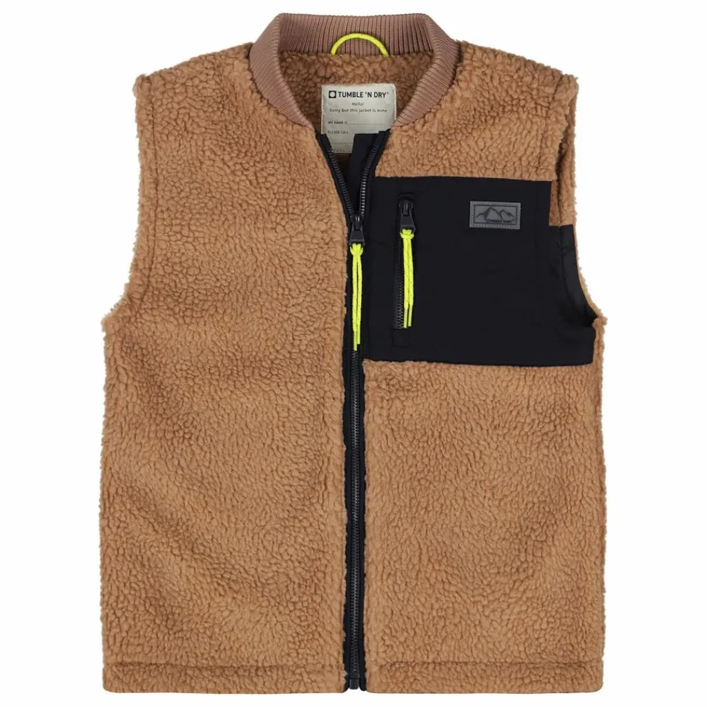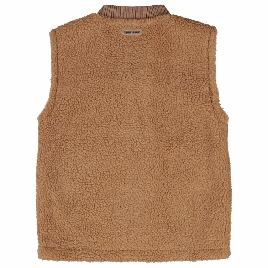 - Ce bodywarmer marron est fabriqué dans une qualité teddy douce et comporte une fermeture à glissière, un ourlet côtelé robuste et une poche plaquée sur le devant.