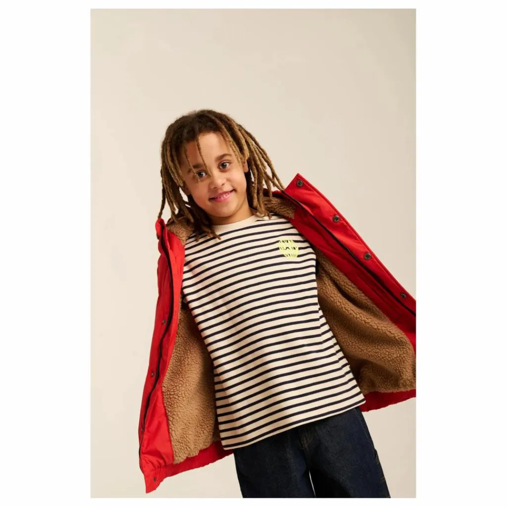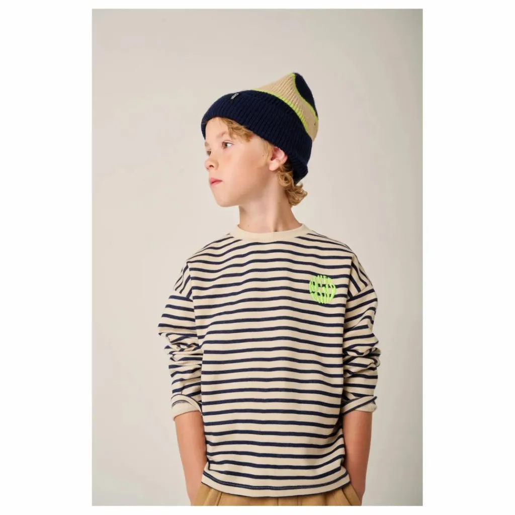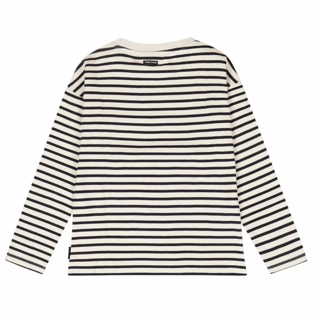 - T-shirt oversize à manches longues avec rayures imprimées, encolure côtelée, broderie sur la poitrine, en coton biologique