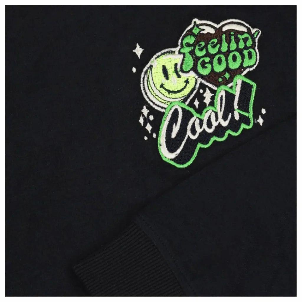 - T-shirt à manches longues avec bords côtelés, qualité douce, broderie sur la poitrine et impression sur le dos, en coton biologique.