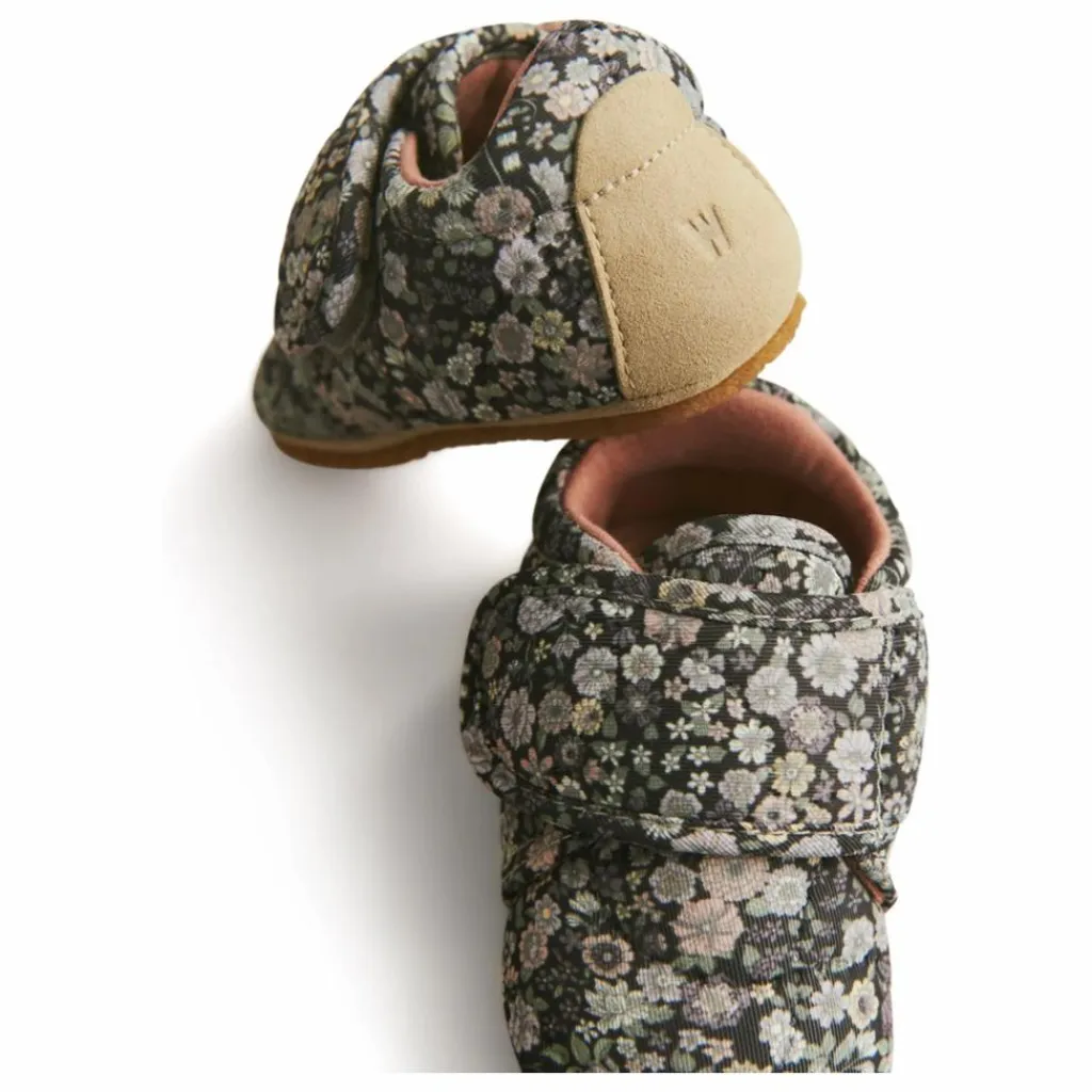 - – Polyester recyclé – Fermeture velcro – Imprimé signature blé – Doublure en coton biologique – Semelle en caoutchouc naturel