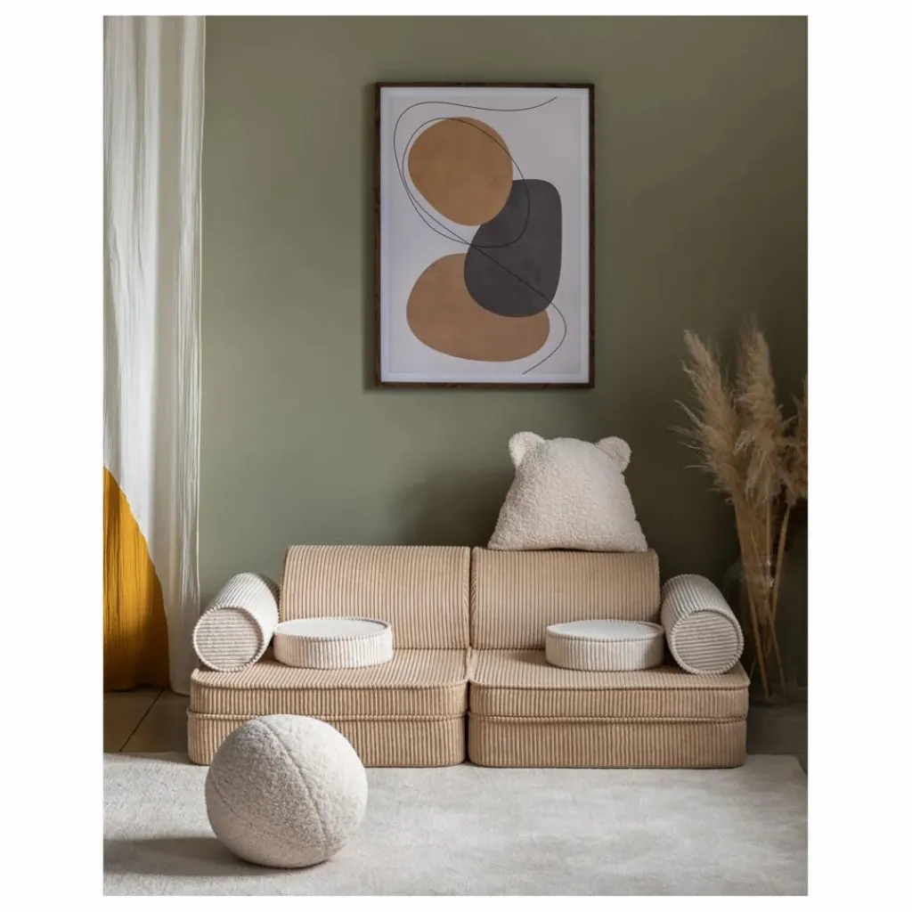 Le canapé Settee Wigiwama est un canapé de jeu polyvalent, conçu à la fois pour des moments de jeux créatifs et de détente. Pensé pour les enfants, sa conception modulaire en 9 pièces permet à nos petits constructeurs de créer des cabanes, des voitures ou des cachettes secrètes. Que ce soit pour lire, se reposer ou jouer, ce canapé moelleux et spacieux est un espace aussi confortable que ludique qui s’intègre parfaitement dans une chambre d’enfant ou une salle de jeux.